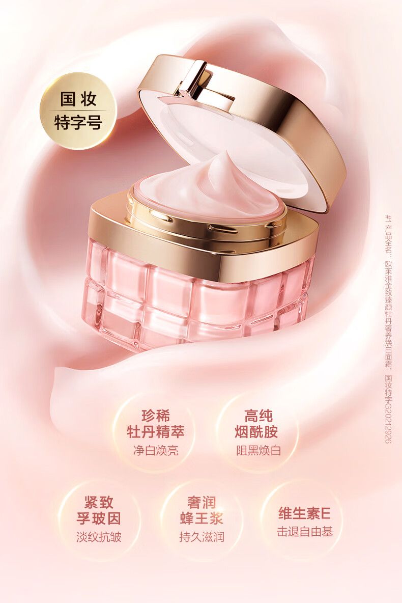 商品名称:L'oreal/欧莱雅 金致牡丹奢养焕白面霜50ml