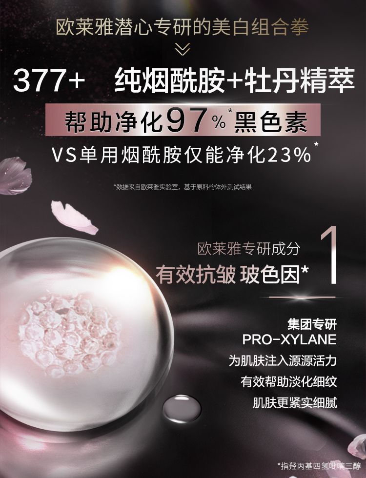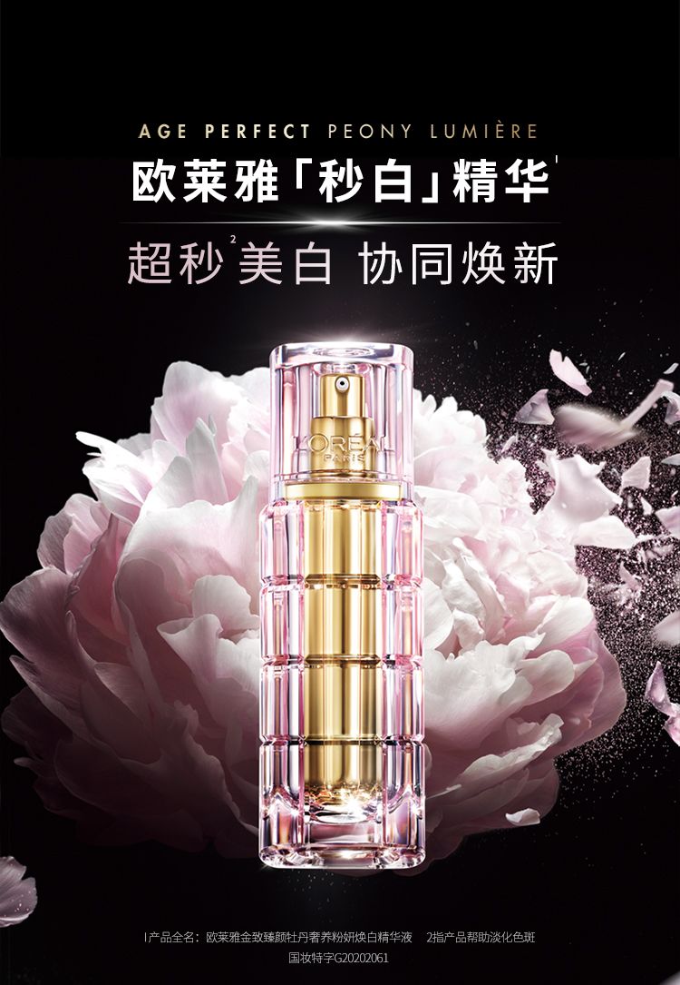 商品名称:L'oreal/欧莱雅 金致臻颜牡丹奢养粉妍焕白精华液 30ml VC烟酰胺玻色因