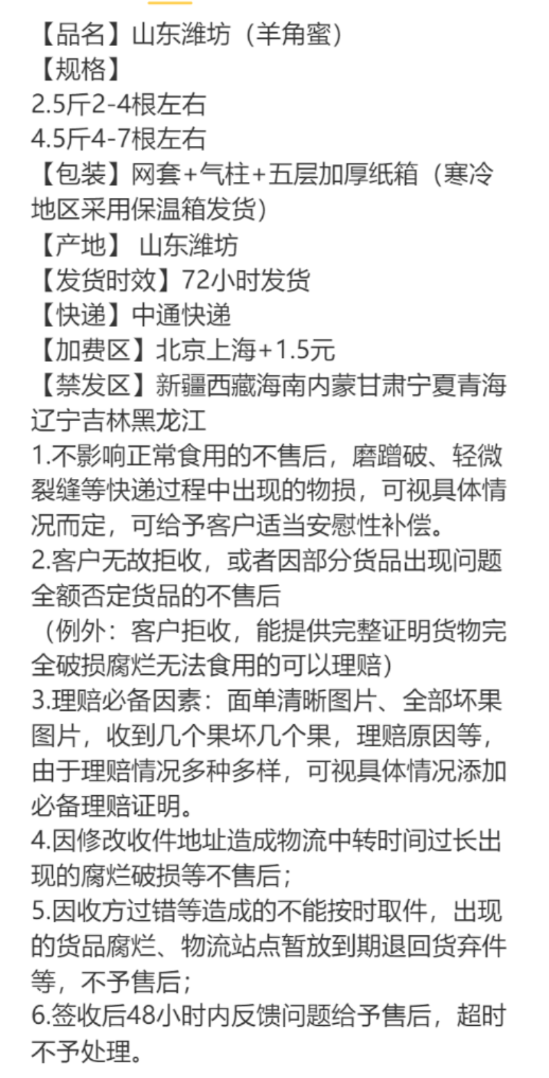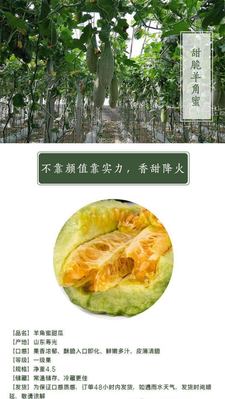 商品名称:【时令果蔬】山东特产 羊角蜜甜瓜 源头直发