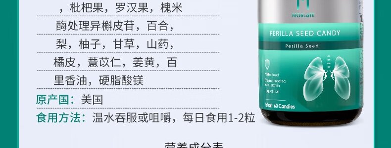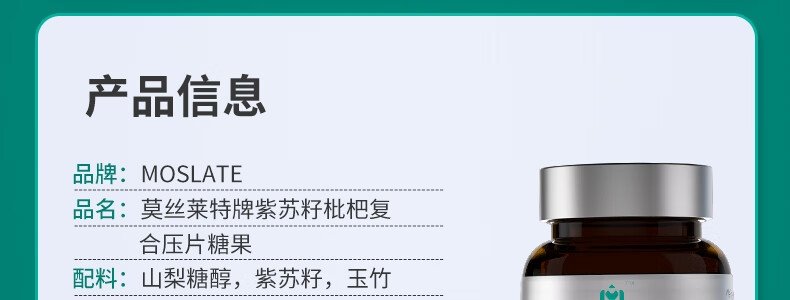 商品名称:Moslate-紫苏籽枇杷复合压片糖果(大贸)/60粒/瓶