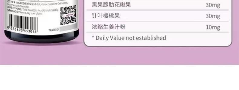 美国 健安喜(GNC)硒维生素C含片 甜橙味 30片