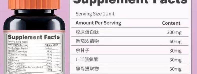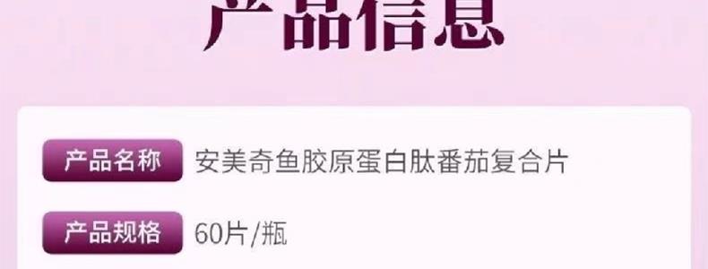 商品名称:安美奇 鱼胶原蛋白肽番茄复合片 /60片/瓶