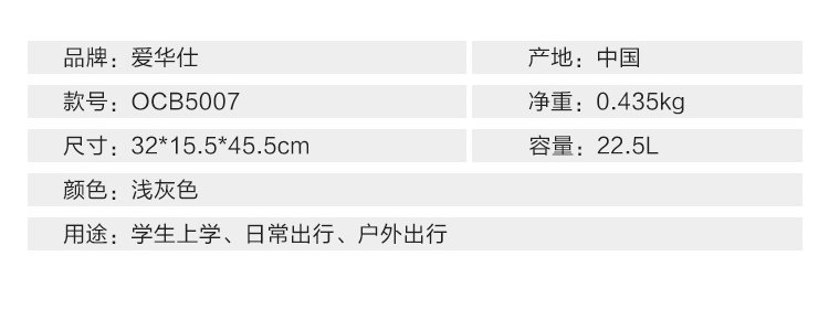 商品名称:爱华仕(OIWAS)大容量时尚韩版 双肩包
