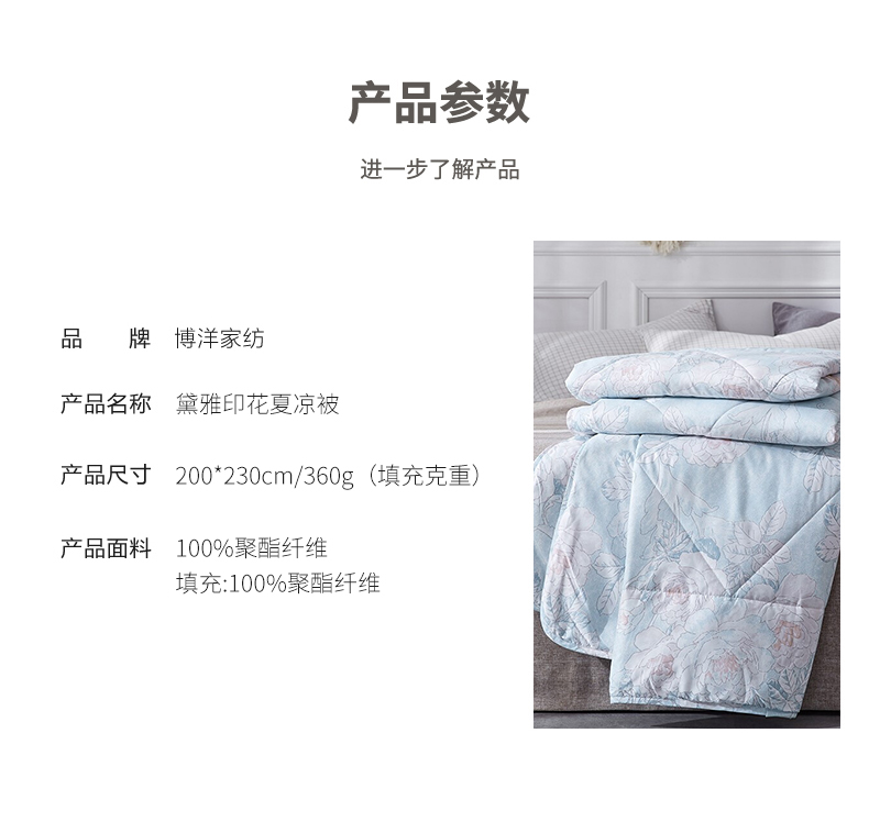 BEYOND/博洋家纺黛雅印花夏凉被200*230cm填充克重360g