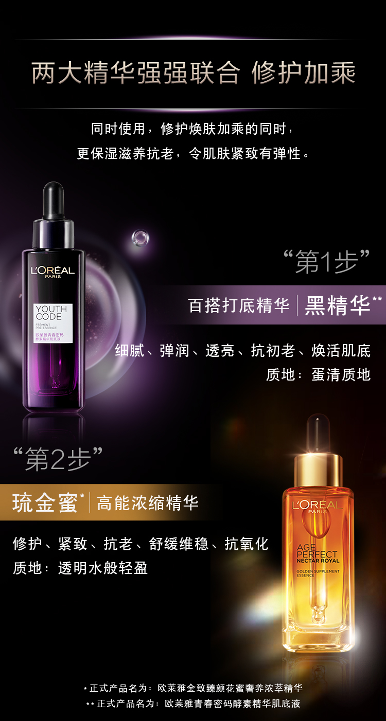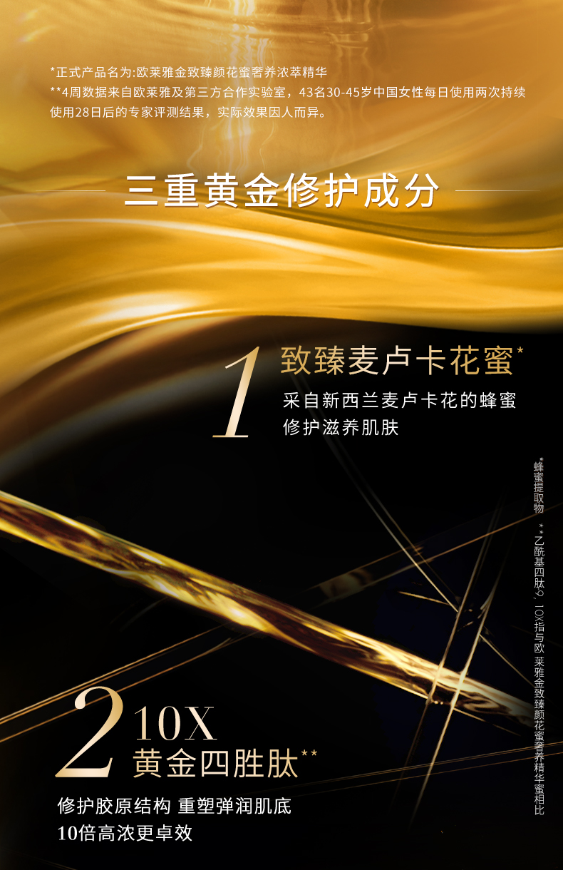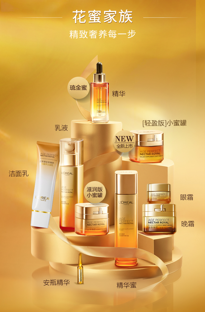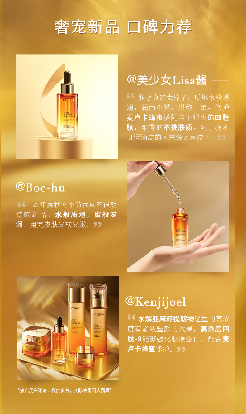 商品名称:L'oreal/欧莱雅 琉金蜜面部精华 30ml 清爽修护金致臻颜补水保湿