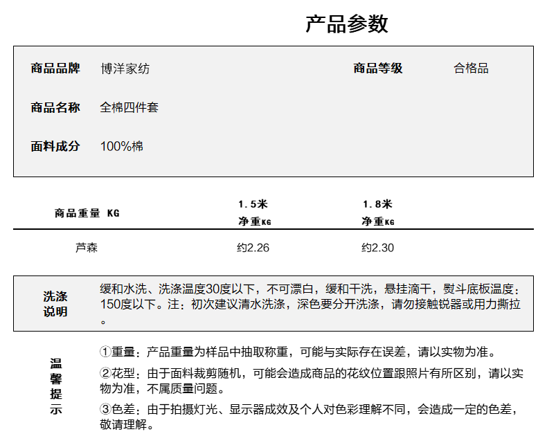 商品名称:BEYOND/博洋家纺芦森全棉床品四件套200*230cm