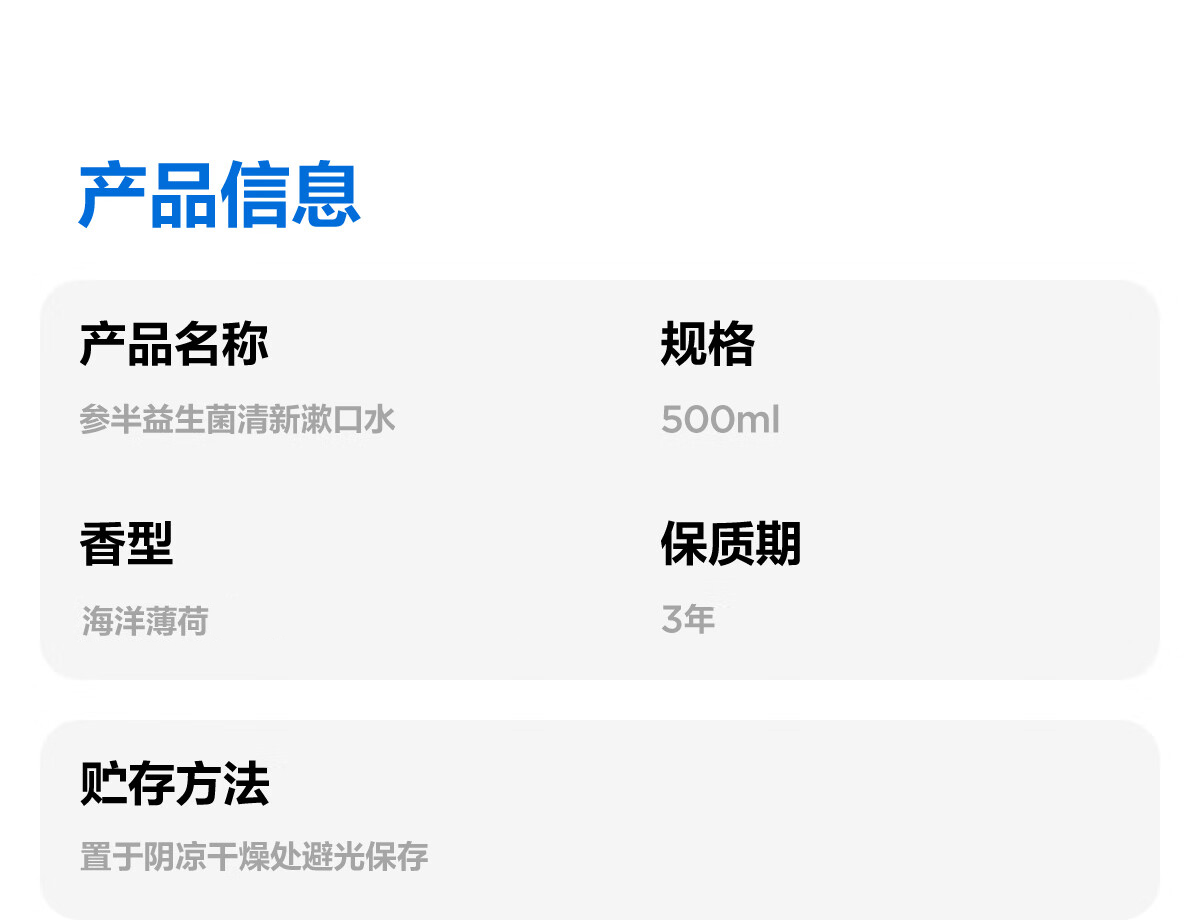 商品名称:参半益生菌清新漱口水-海洋薄荷500ml