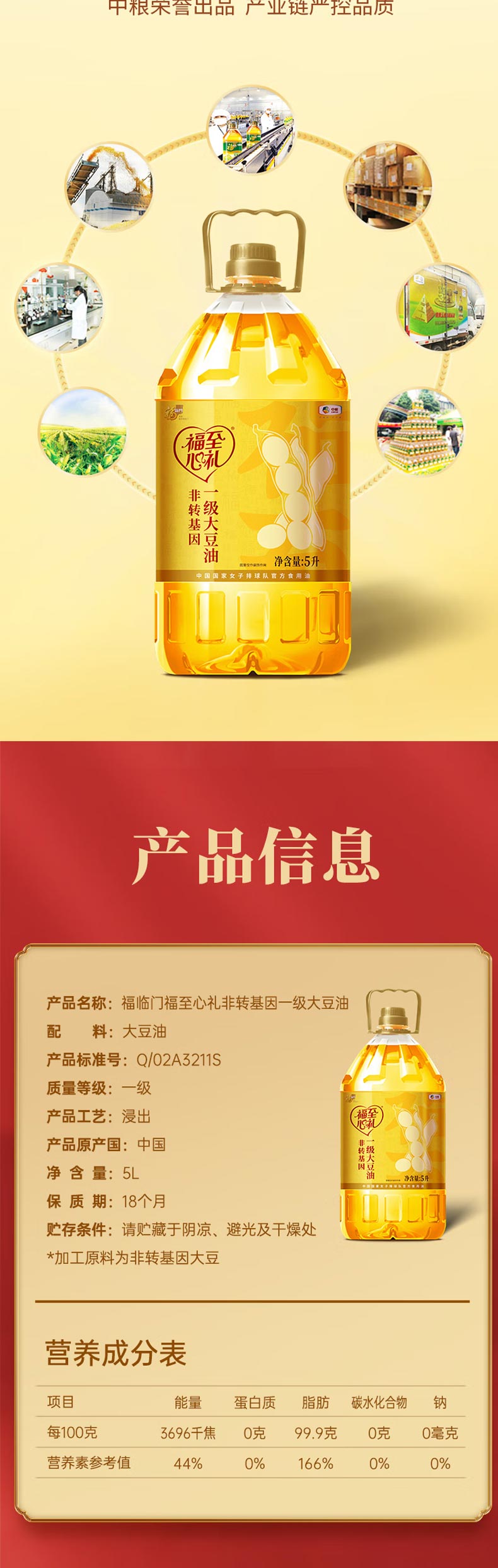 商品名称:中粮福临门福至心礼非转基因一级大豆油5L