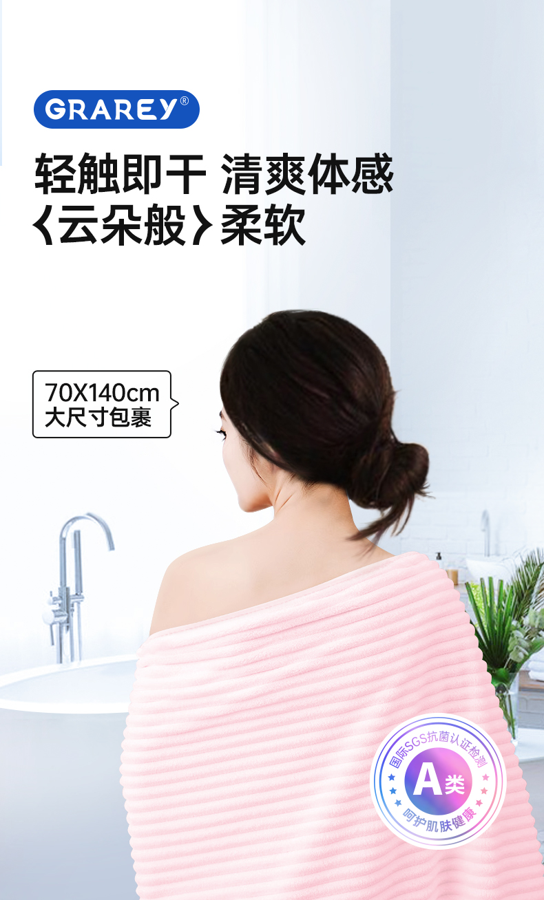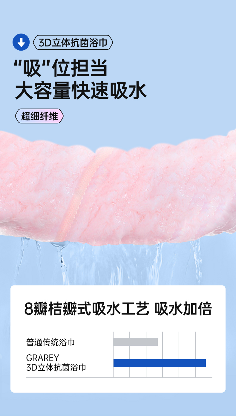 商品名称:GRAREY/格瑞亚3D立体抗菌浴巾(70x140cm)*2条