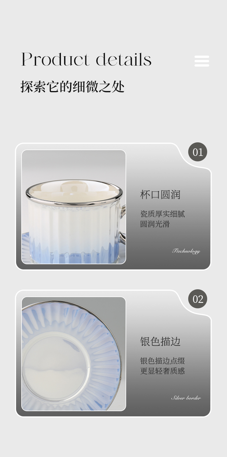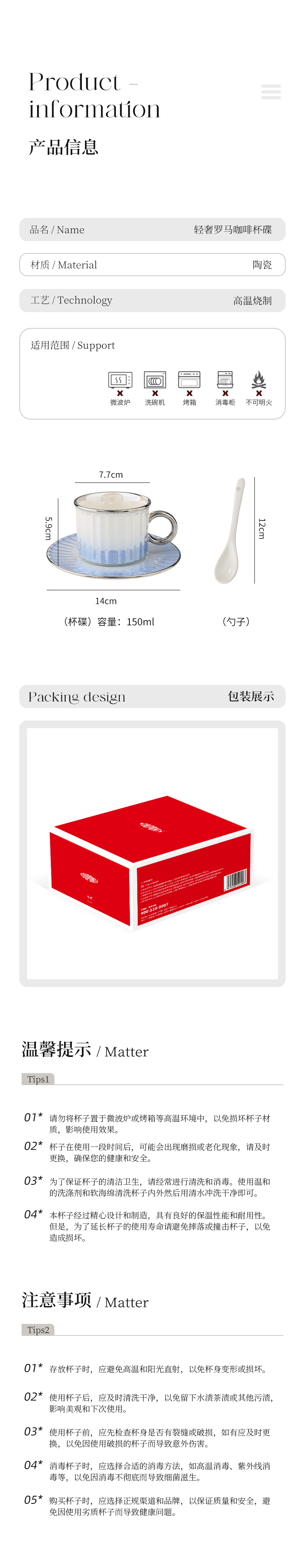 商品名称:Dupont/杜邦150毫升轻奢罗马咖啡杯碟套装PKFBD-031