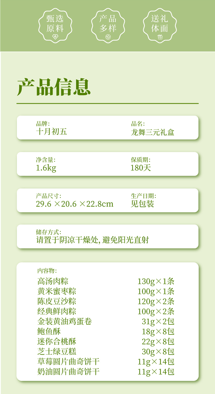 商品名称:十月初五龙舞三元粽子礼盒1600g