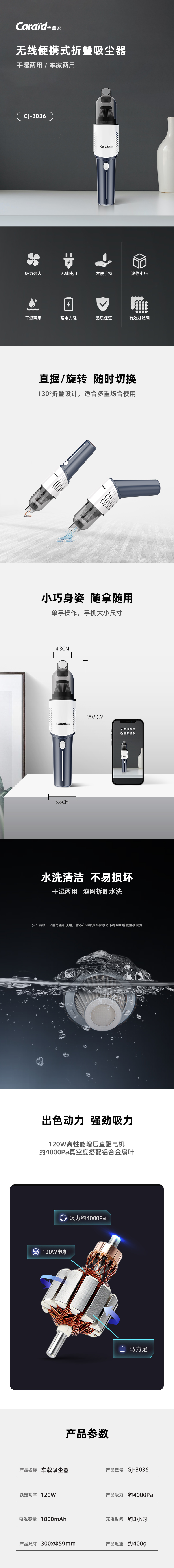 caraid/车管家无线折叠车载吸尘器GJ-3036
