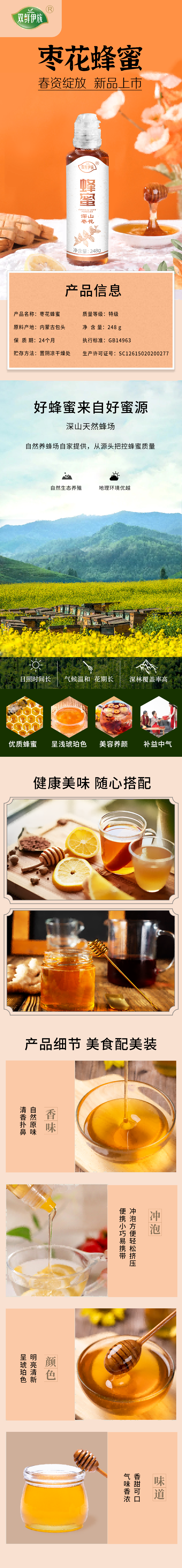 商品名称:双鲜伊族枣花蜂蜜回吸口瓶装248g
