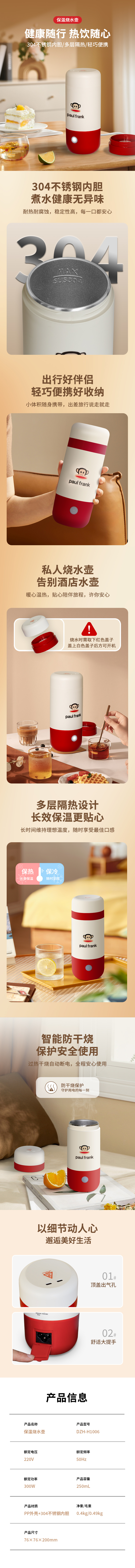 商品名称:Paul Frank/大嘴猴250毫升保温烧水壶DZH-H1006
