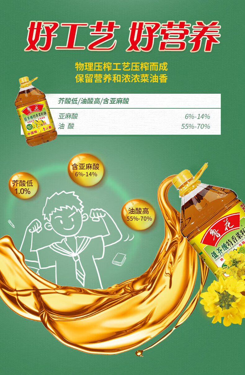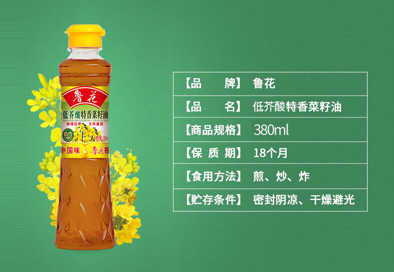 商品名称:鲁花低芥酸特香菜籽油380ml*2瓶