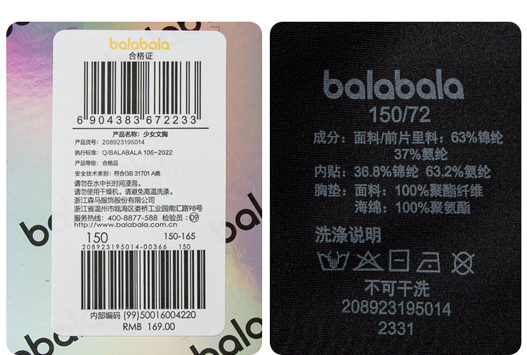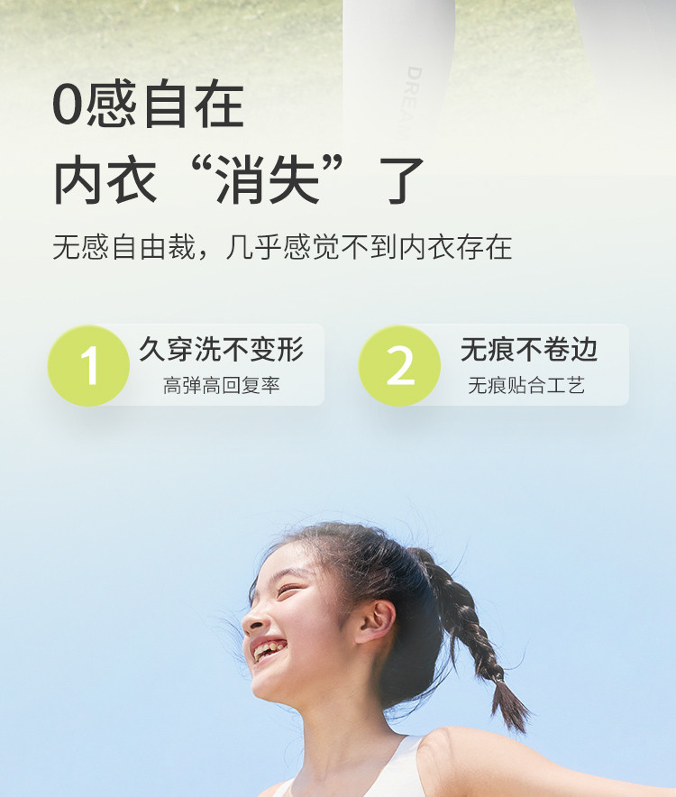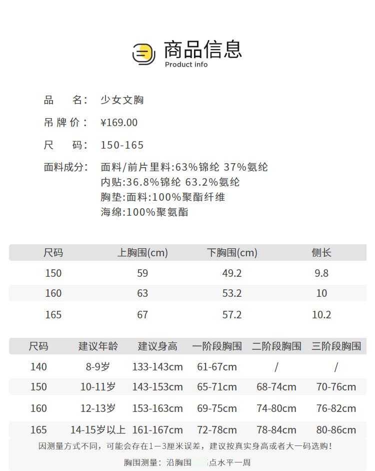 商品名称:二阶段运动胸衣发育期女童薄款内衣弹力外穿防凸点走光少女文胸 655301