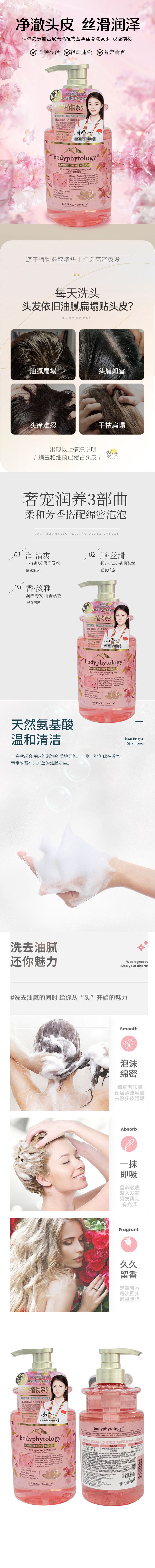 商品名称:Bodyphytology/保体高乐 氨基酸天然植物逸柔丝滑洗发水 650ml 浪漫樱花