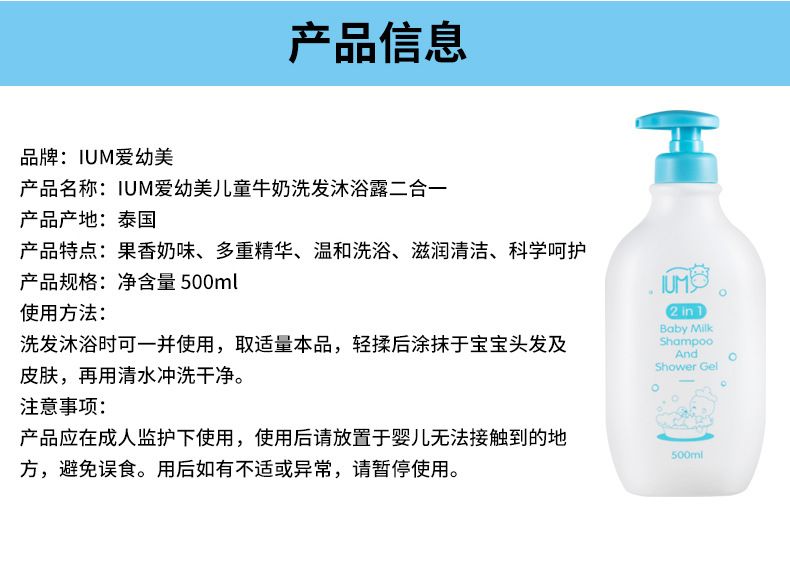 商品名称:爱幼美IUM 儿童洗发沐浴露二合一 500ml