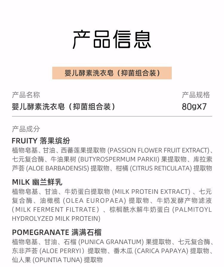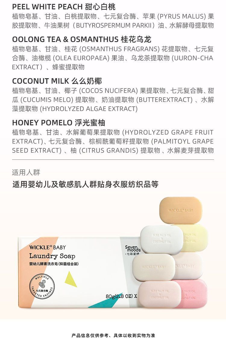 商品名称:WICKLE惟呵婴幼儿酵素洗衣皂(抑菌组合装)80g*7