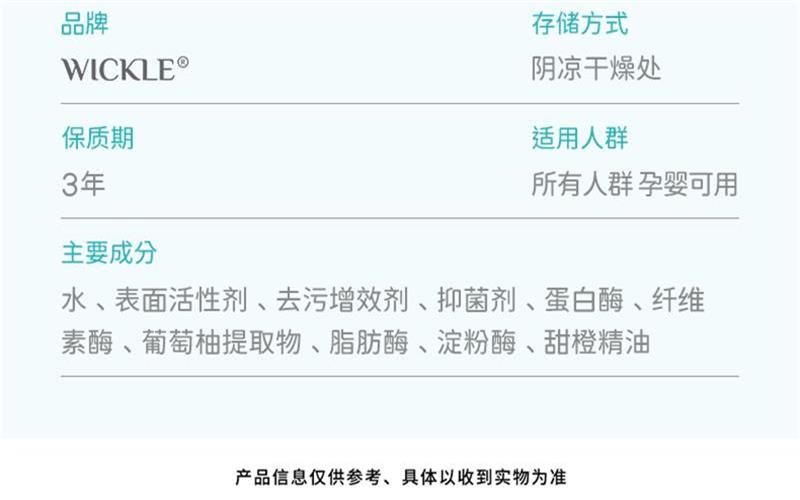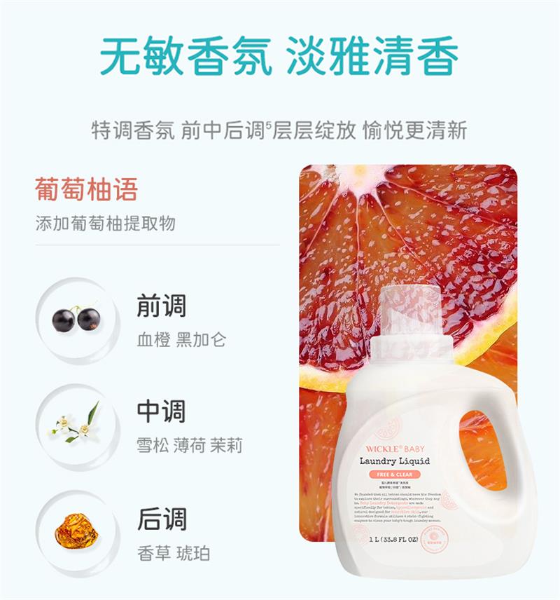商品名称:WICKLE惟呵婴儿酵素抑菌洗衣液(葡萄柚味)新生儿宝宝专用