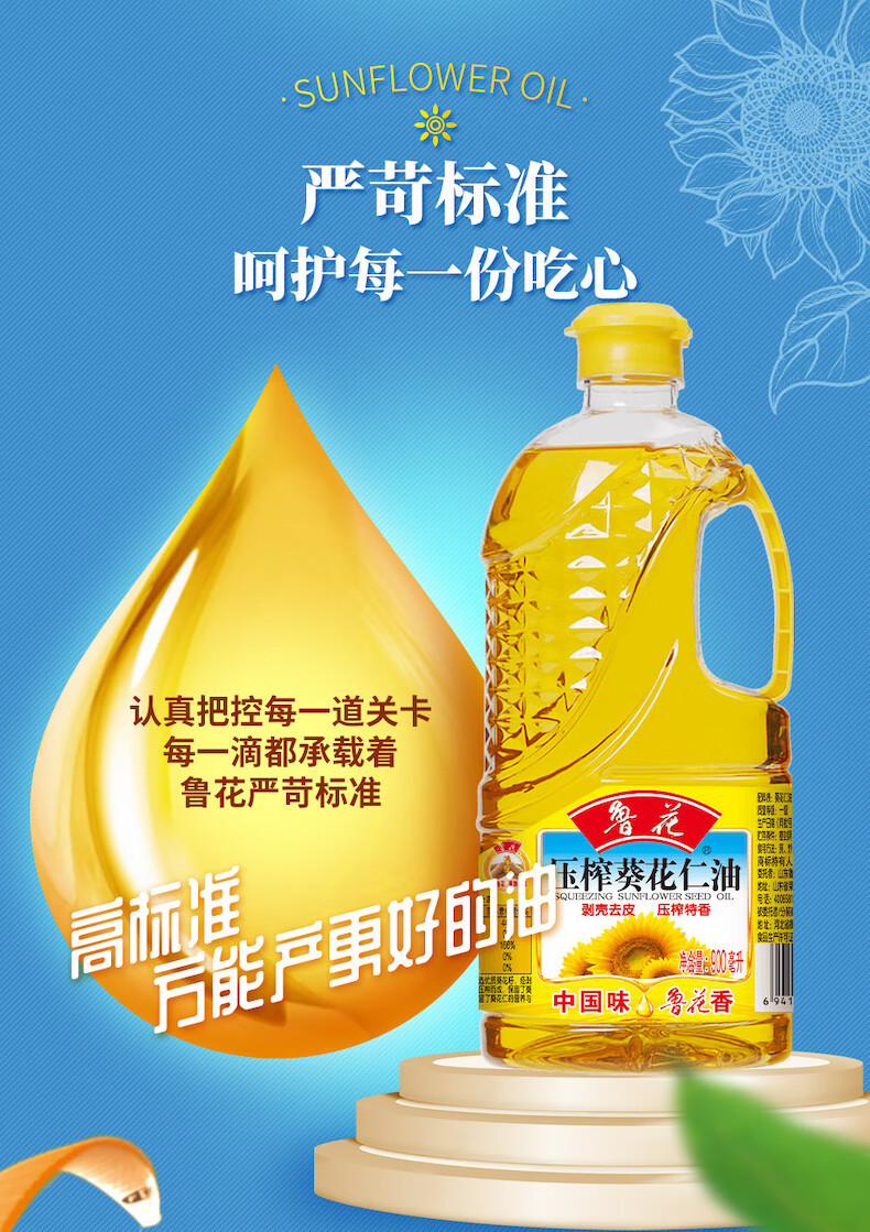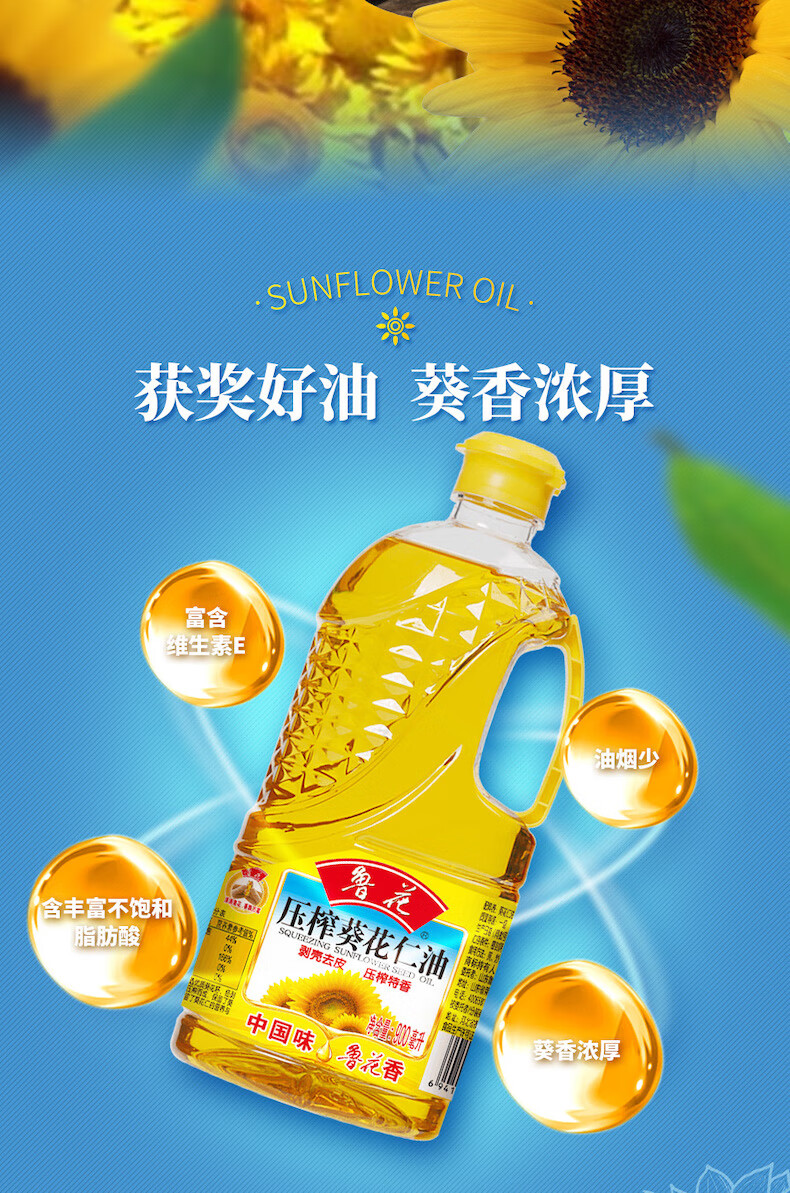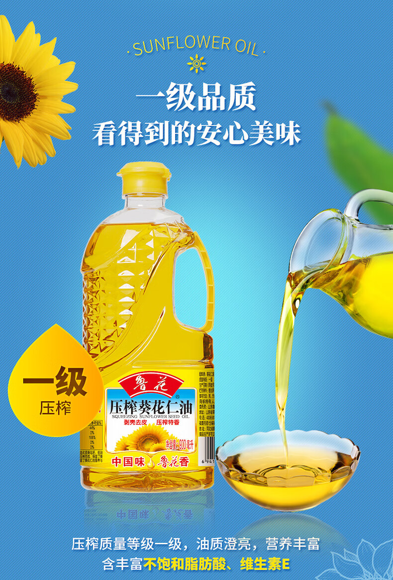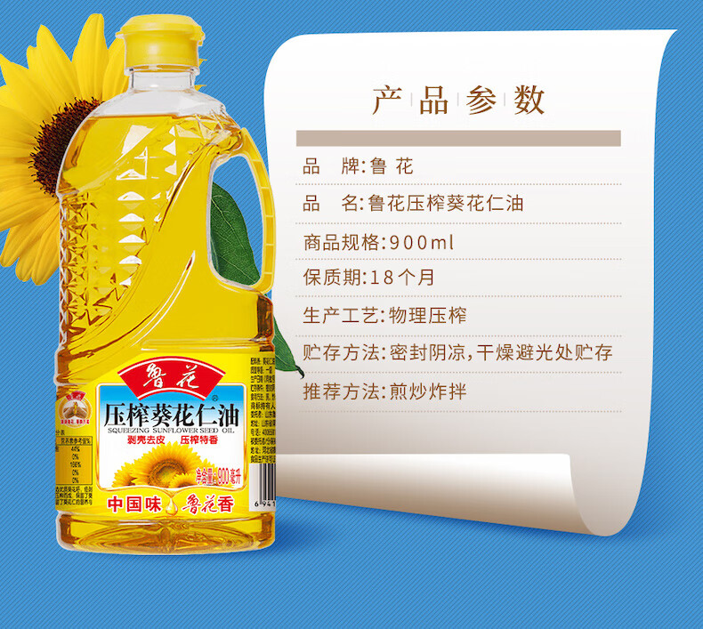 商品名称:鲁花压榨葵花仁油900mlL*2瓶