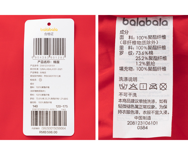 商品名称:国风儿童棉服男童棉衣中大童夹克秋冬外套内里夹棉保暖童装 674693