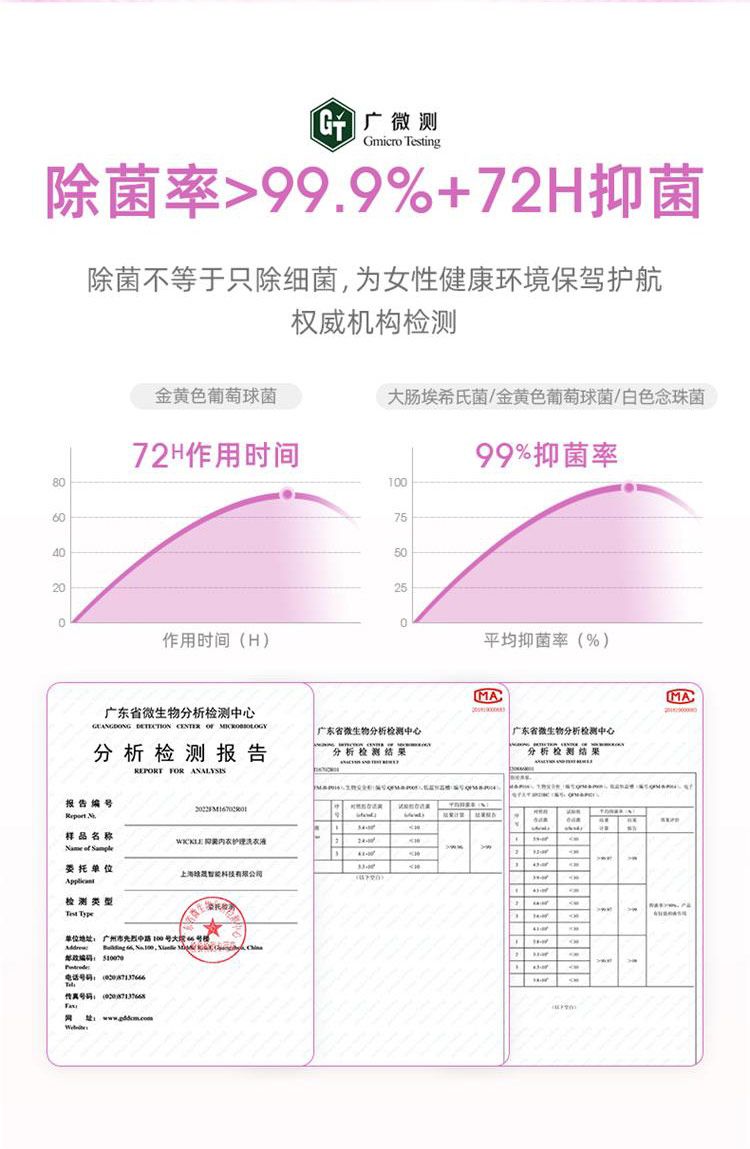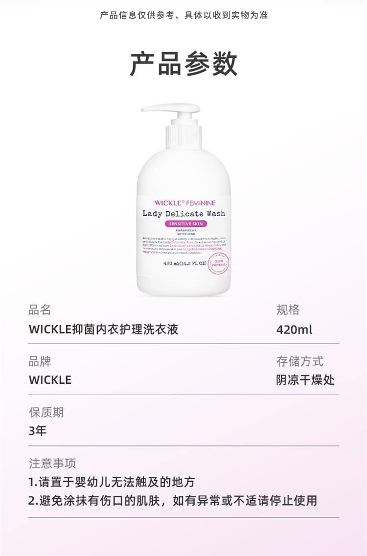商品名称:WICKLE惟呵抑菌内衣护理洗衣液温和女士内裤清洗液衣物清洁护理温和