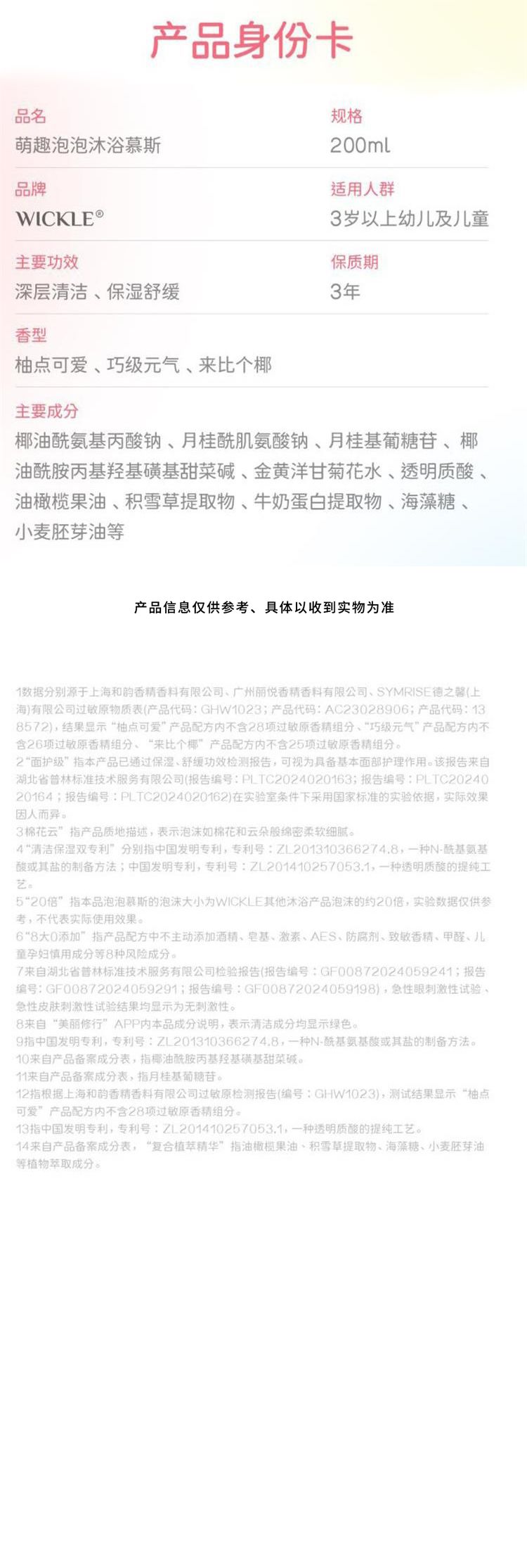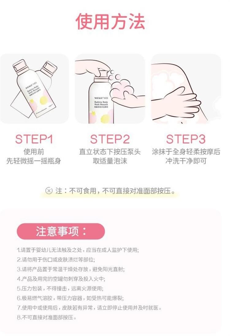商品名称:WICKLE惟呵 泡泡慕斯沐浴露洗发水二合一 200ml