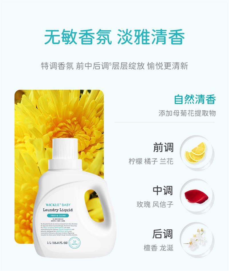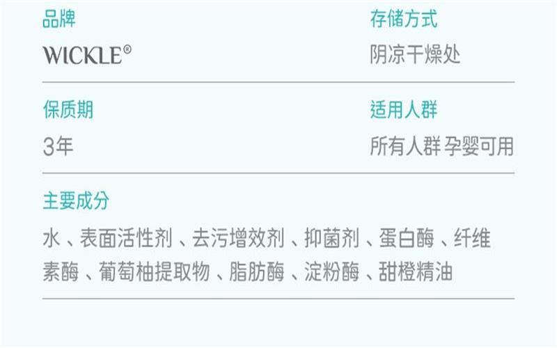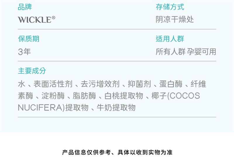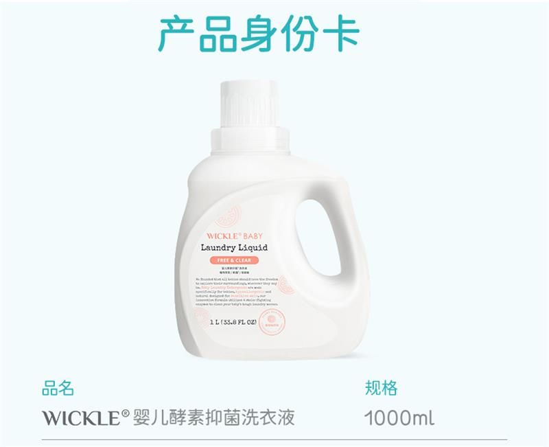 商品名称:WICKLE惟呵婴儿酵素抑菌洗衣液(白桃味)新生儿宝宝专用