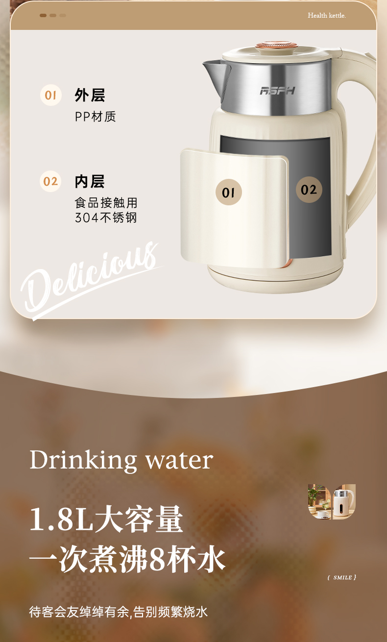 RSFH/乐仕菲斯1.8升电热水壶RS-H1