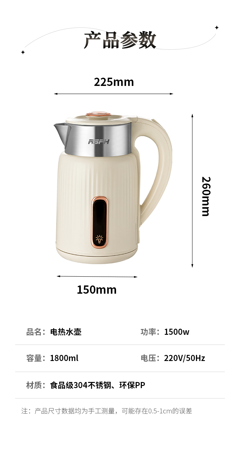 商品名称:RSFH/乐仕菲斯1.8升电热水壶RS-H1