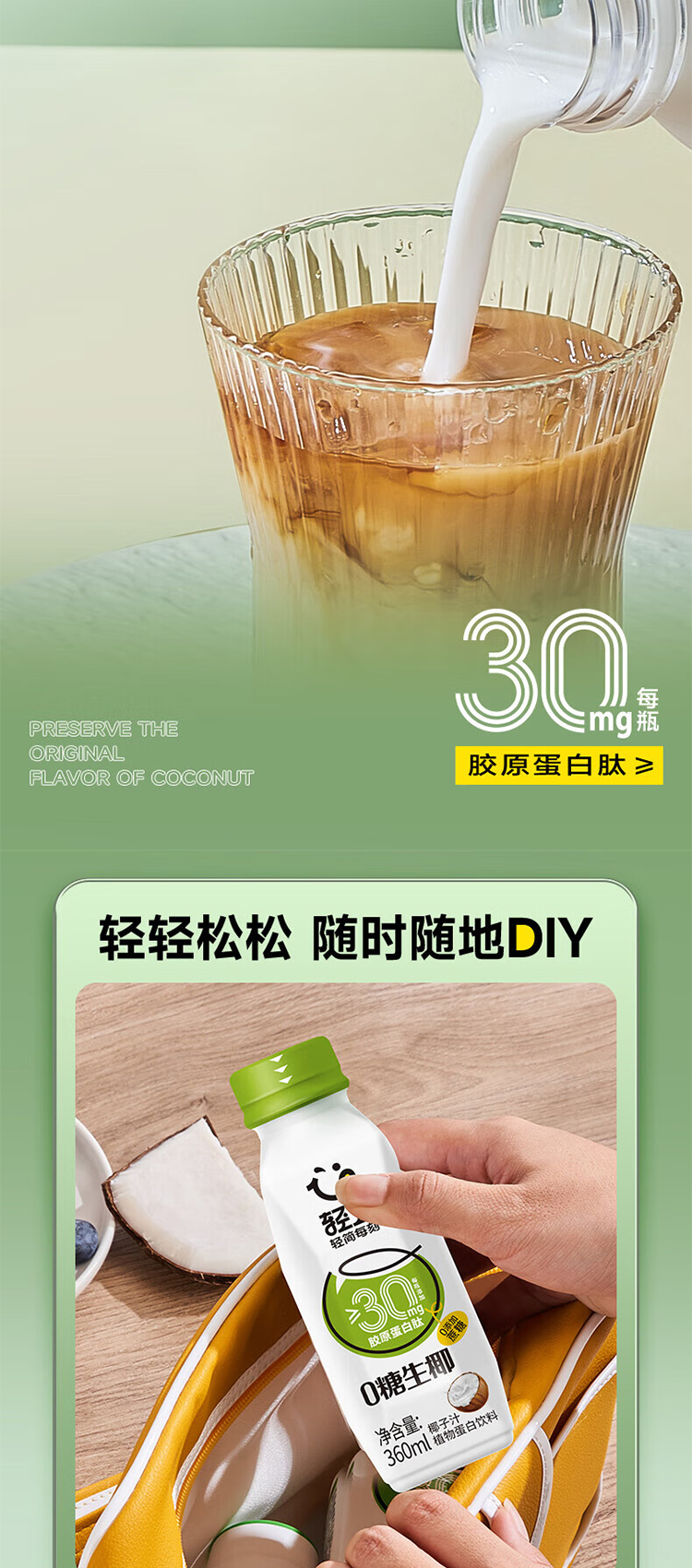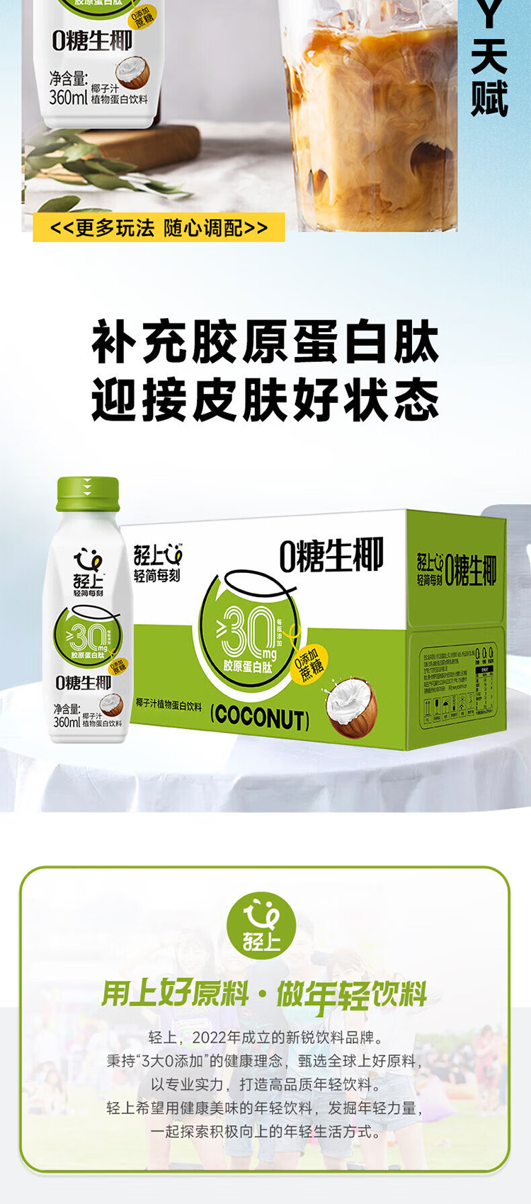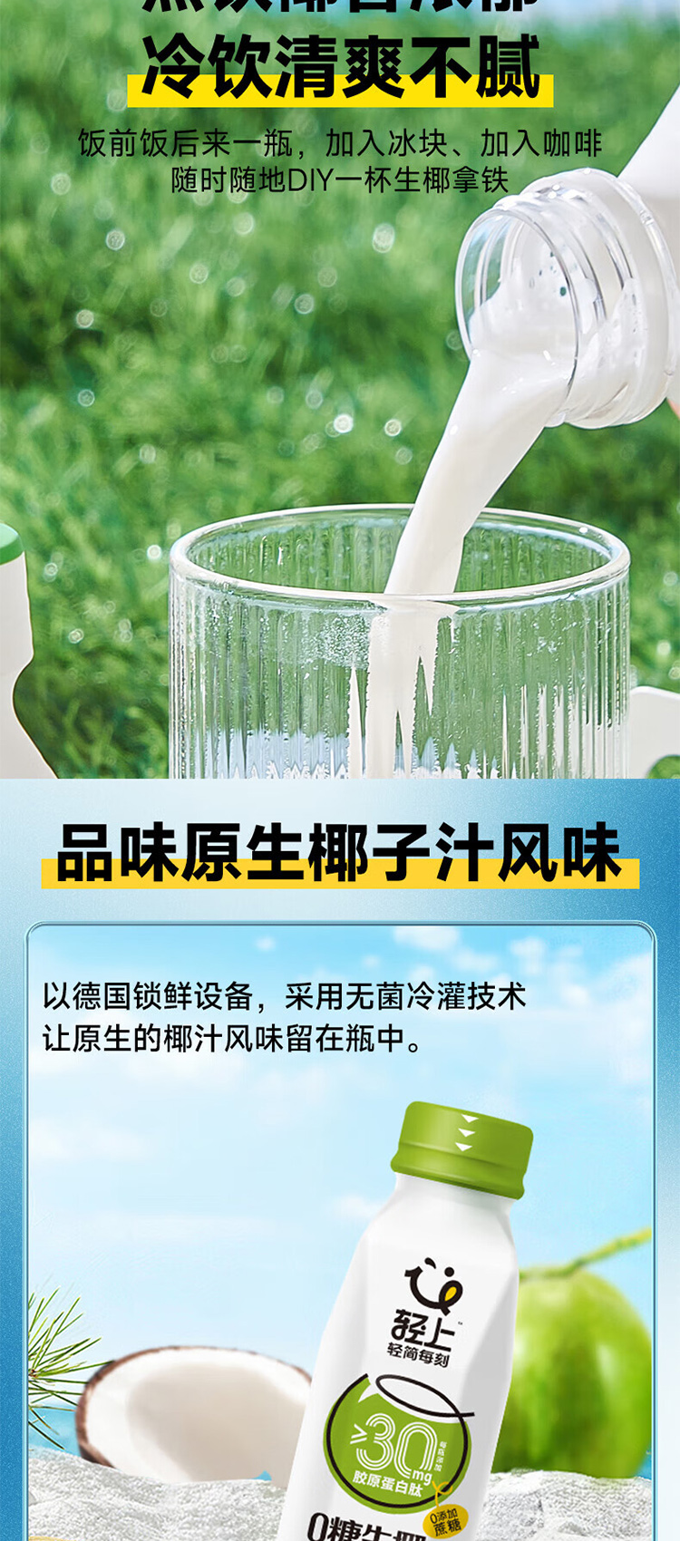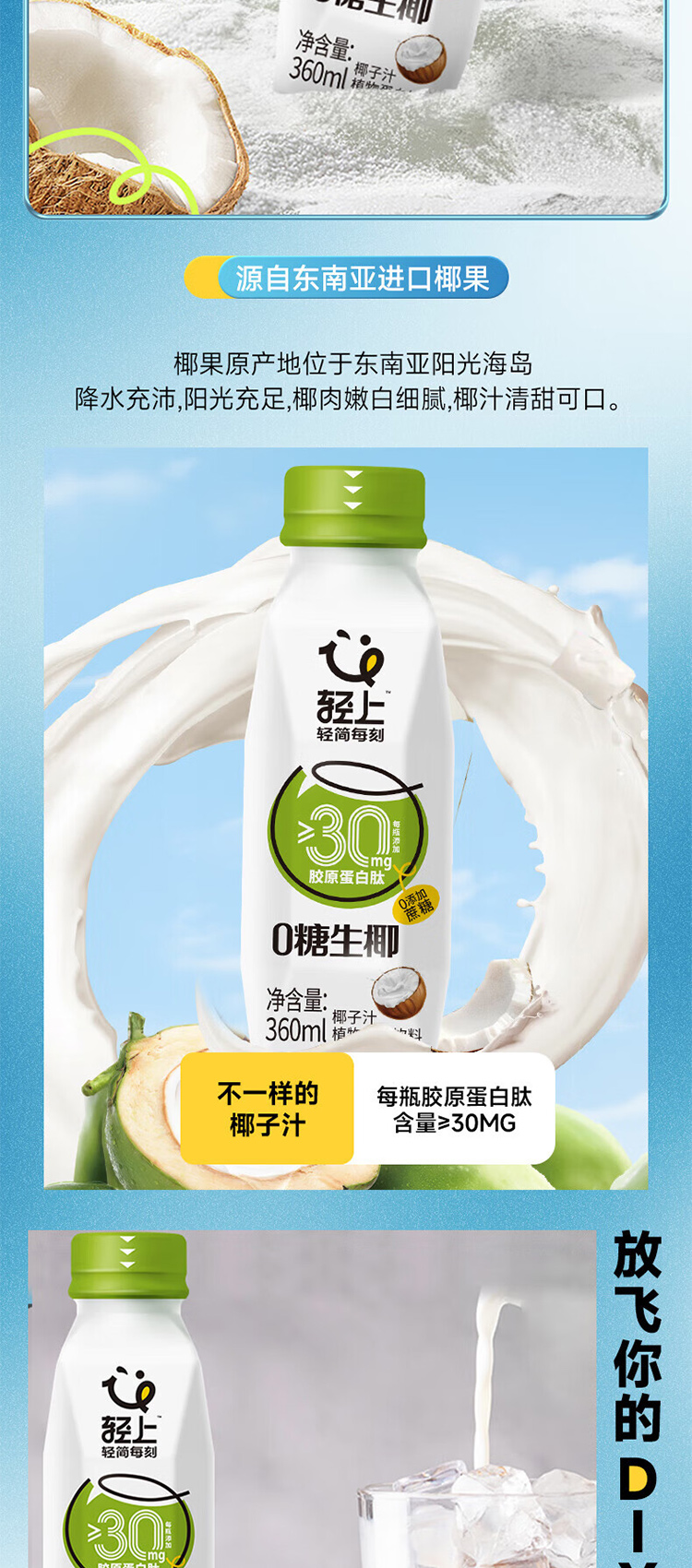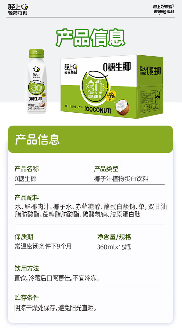 商品名称:轻上0糖生椰子汁整箱360ml*15瓶