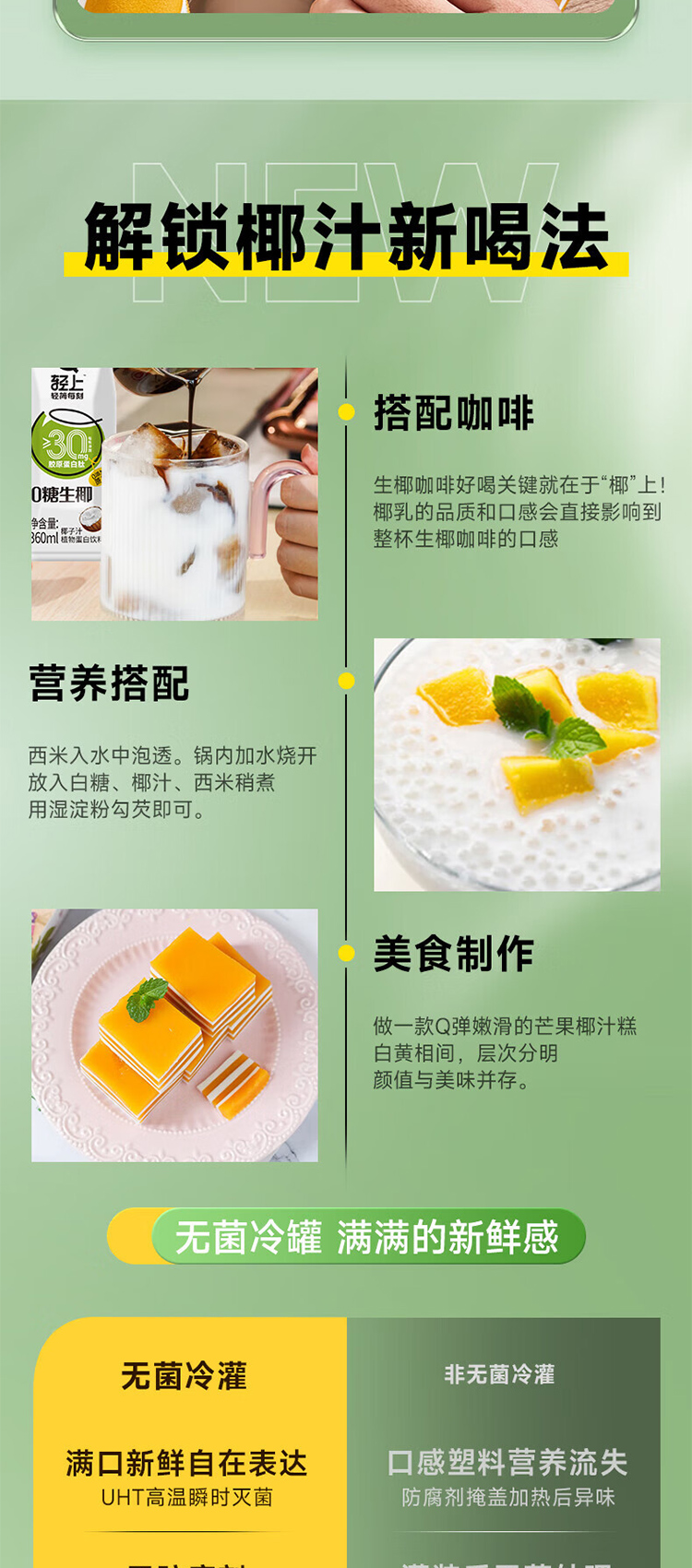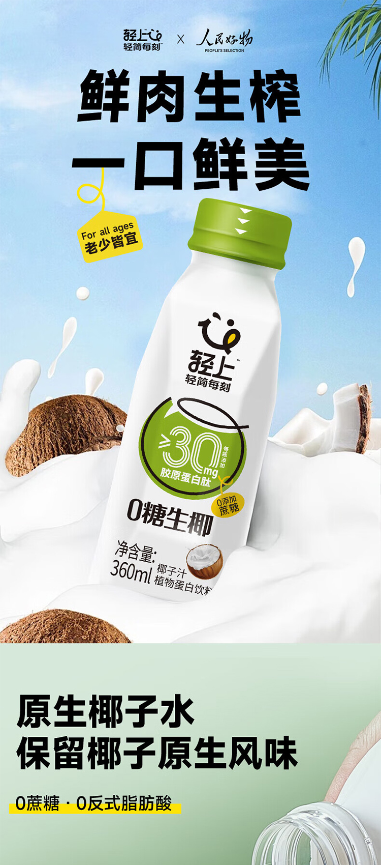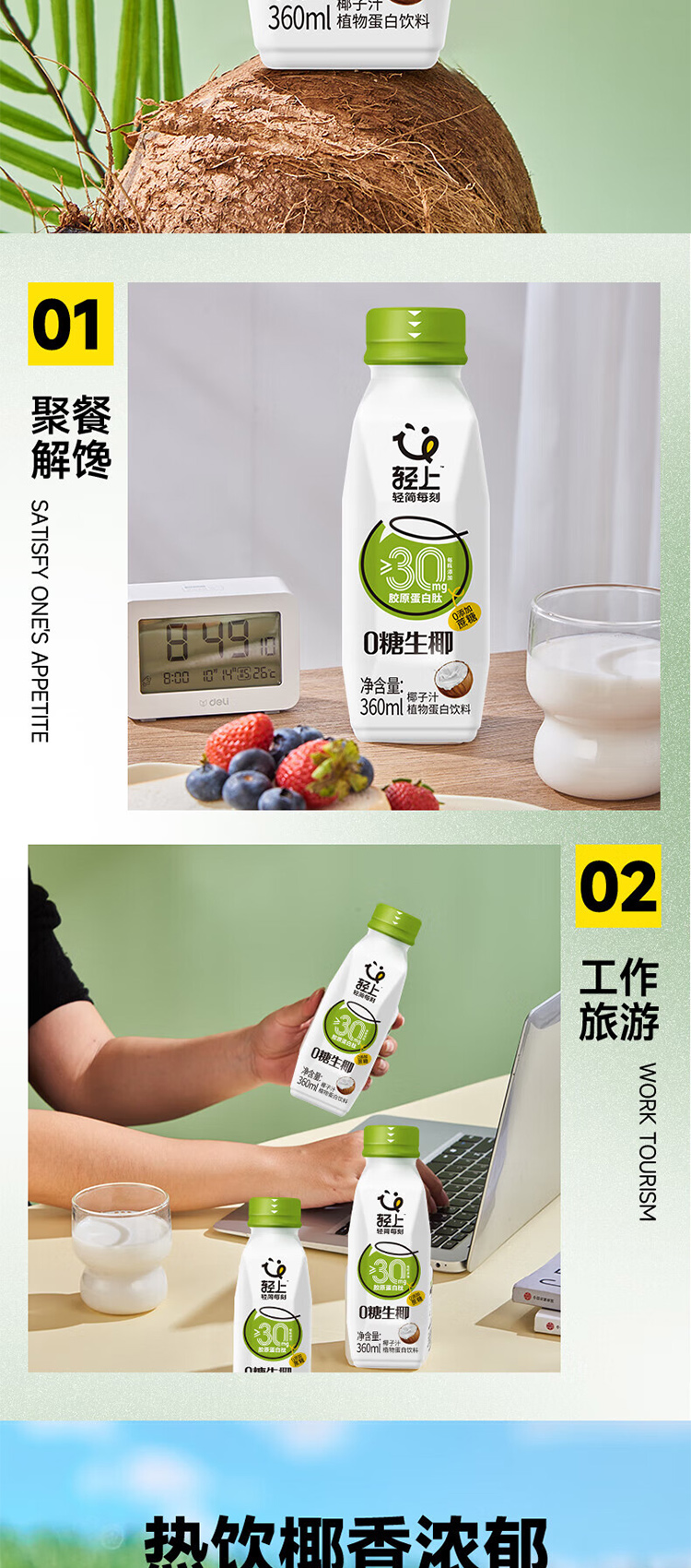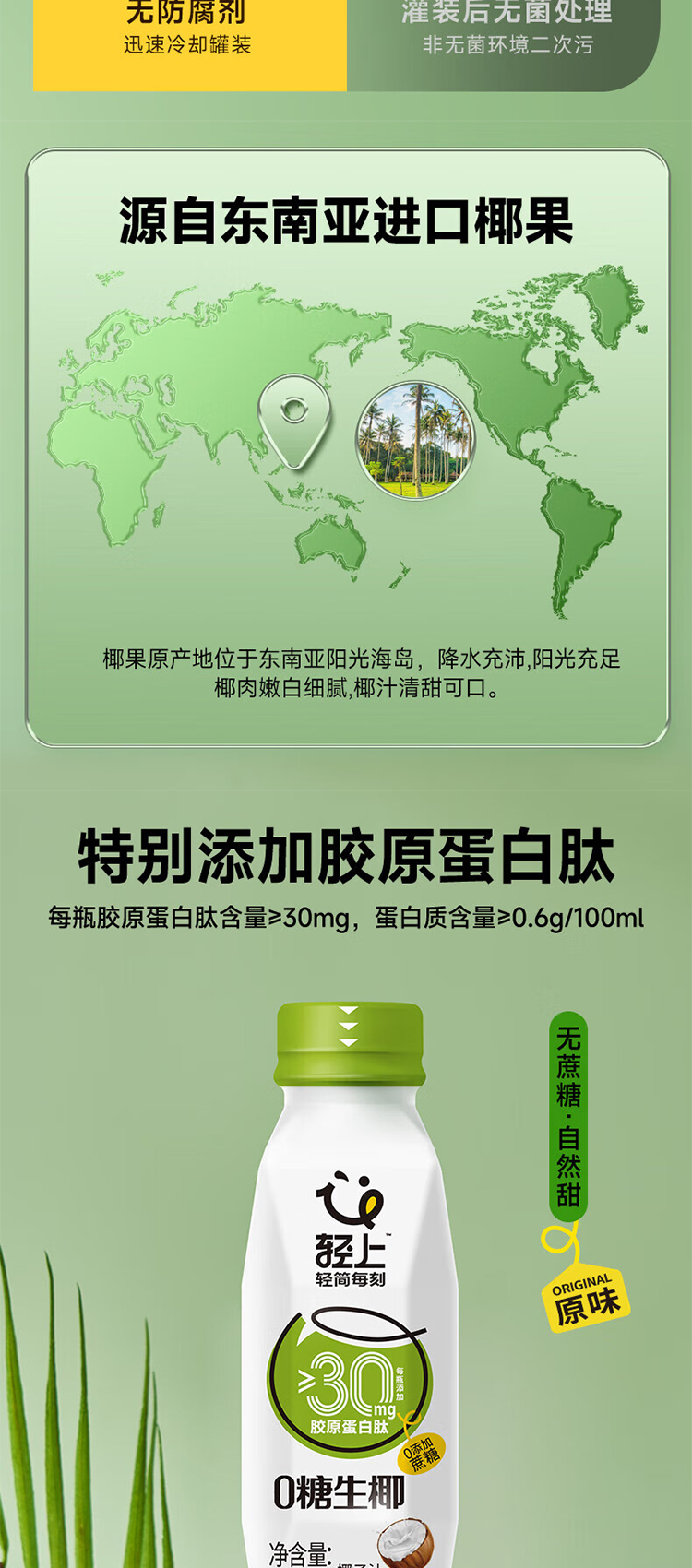 商品名称:轻上0糖生椰子汁整箱360ml*15瓶
