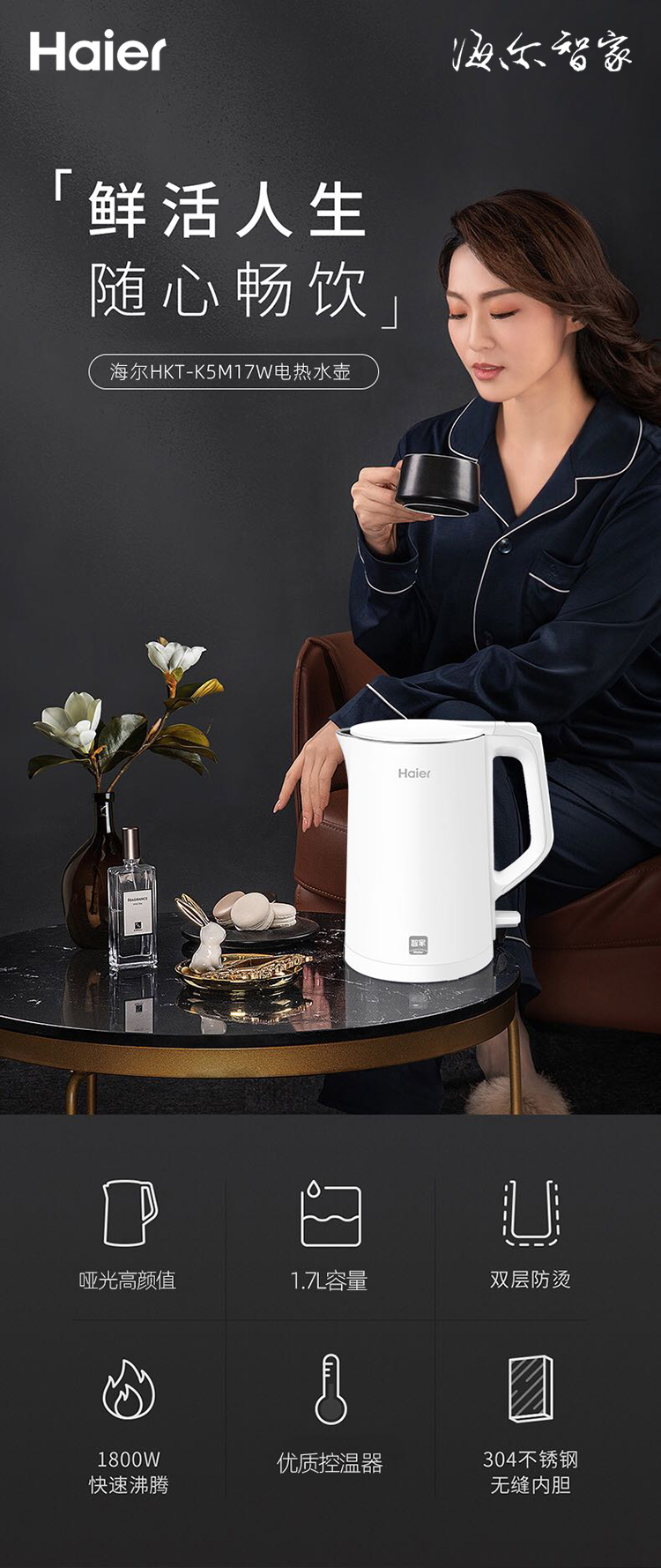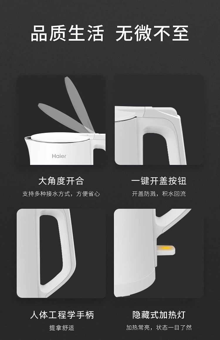 【京东配送】Haier/海尔1.7升电热水壶HKT-K5M17W