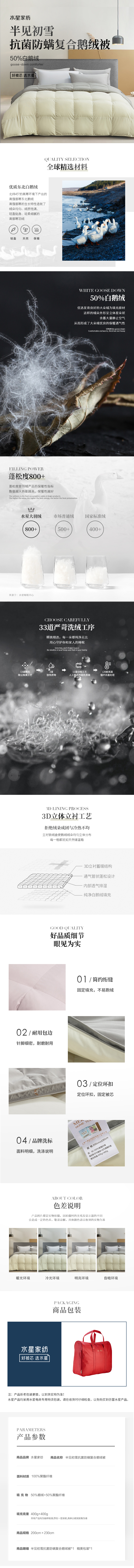 商品名称:【京东配送】水星家纺半见初雪抗菌防螨复合鹅绒被200*230cm 填充克重800g