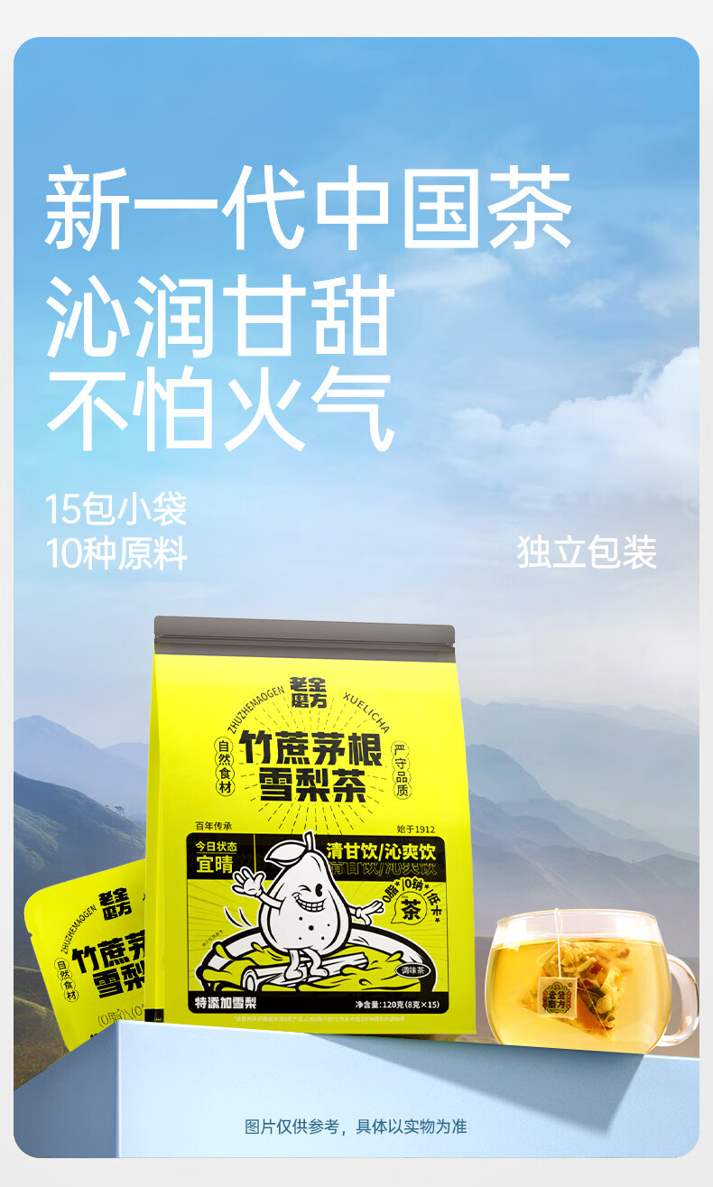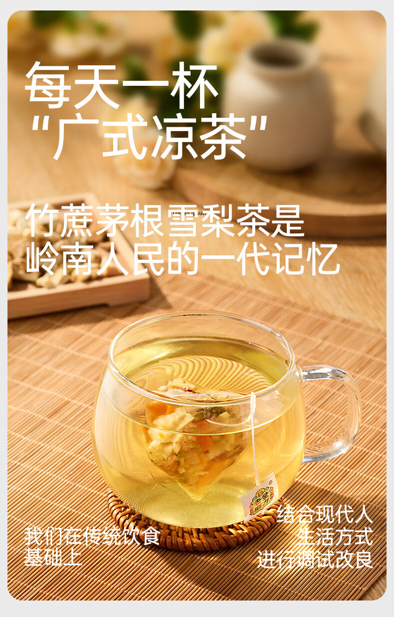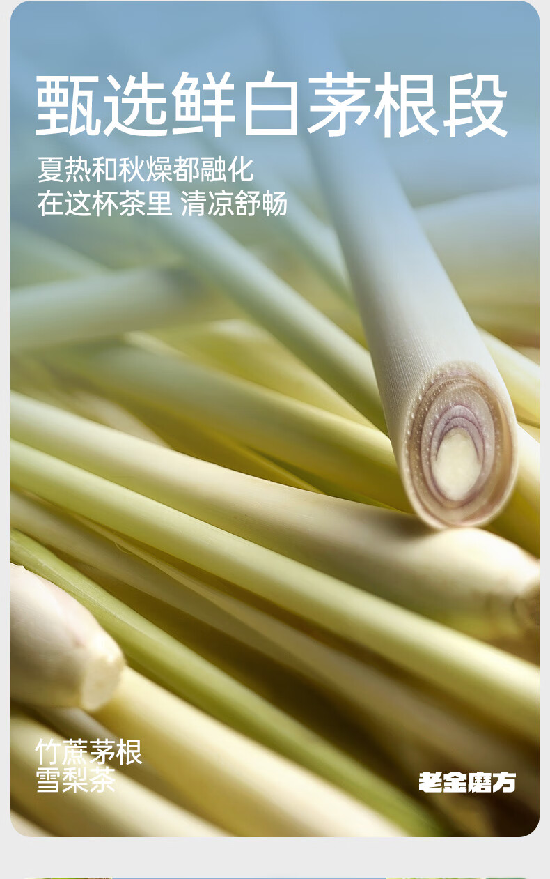 商品名称:老金磨方竹蔗茅根雪梨茶120g