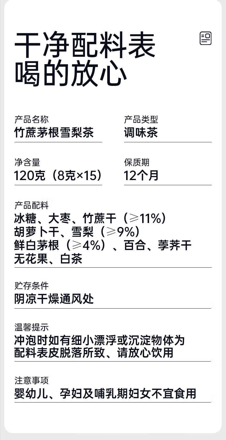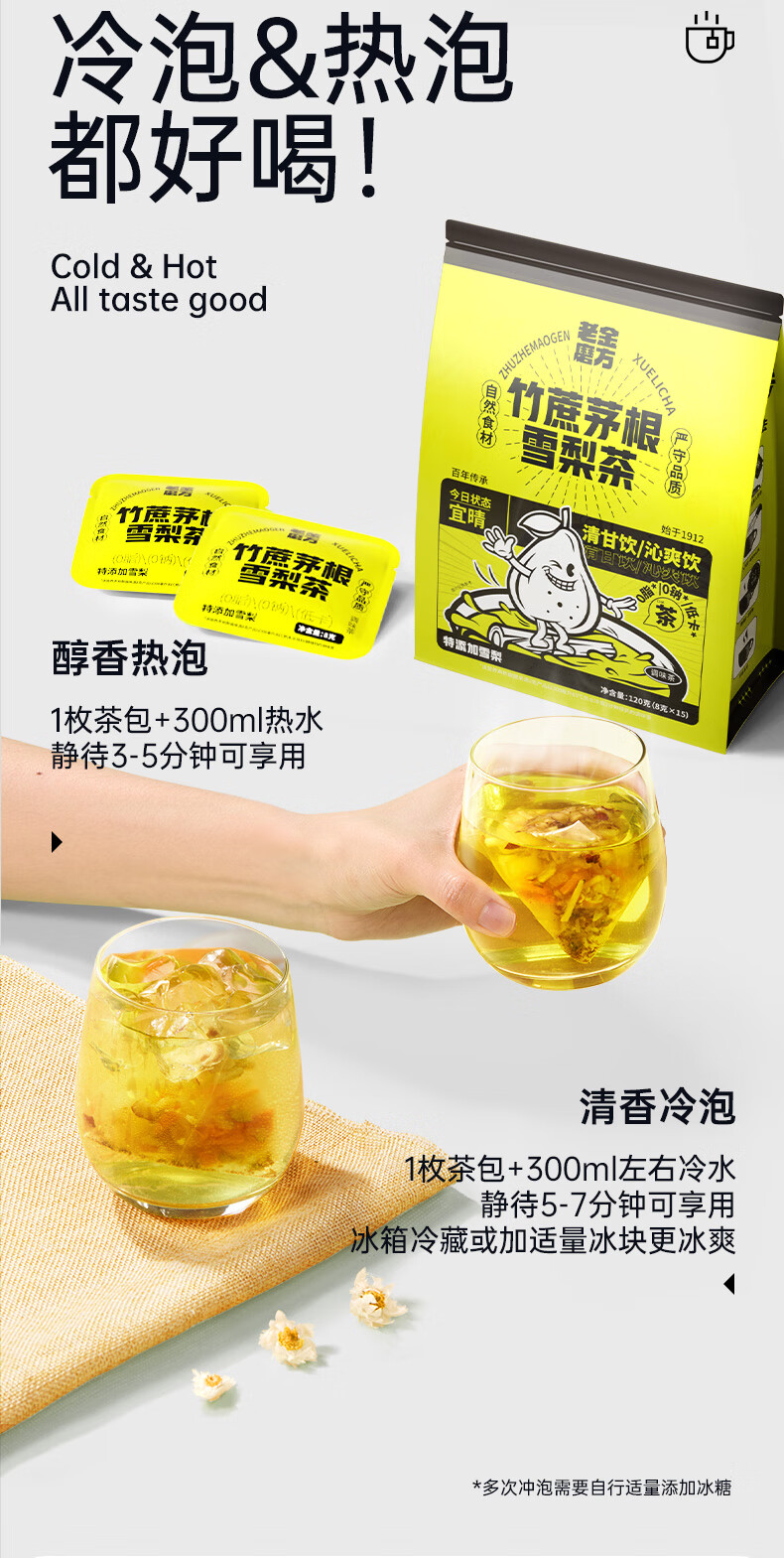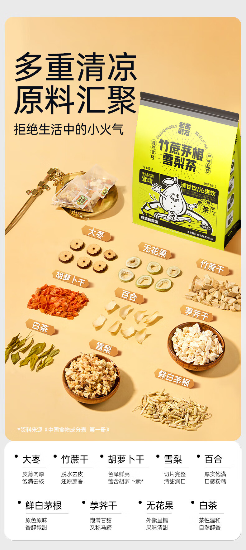 商品名称:老金磨方竹蔗茅根雪梨茶120g