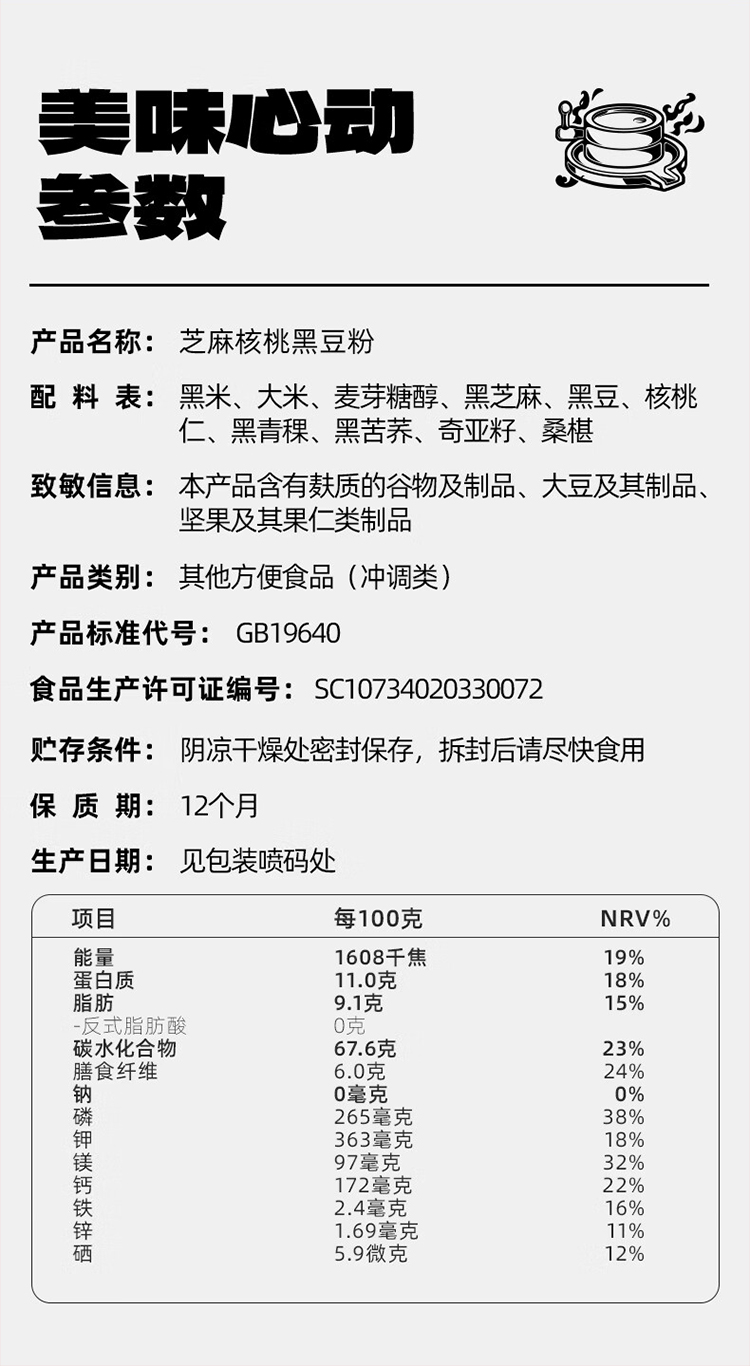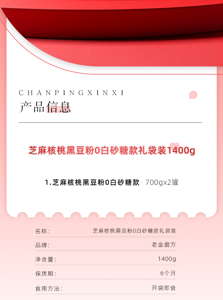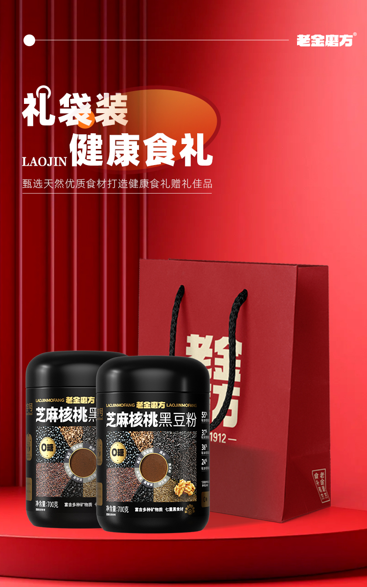商品名称:老金磨方0糖芝麻核桃黑豆粉礼袋装1400g