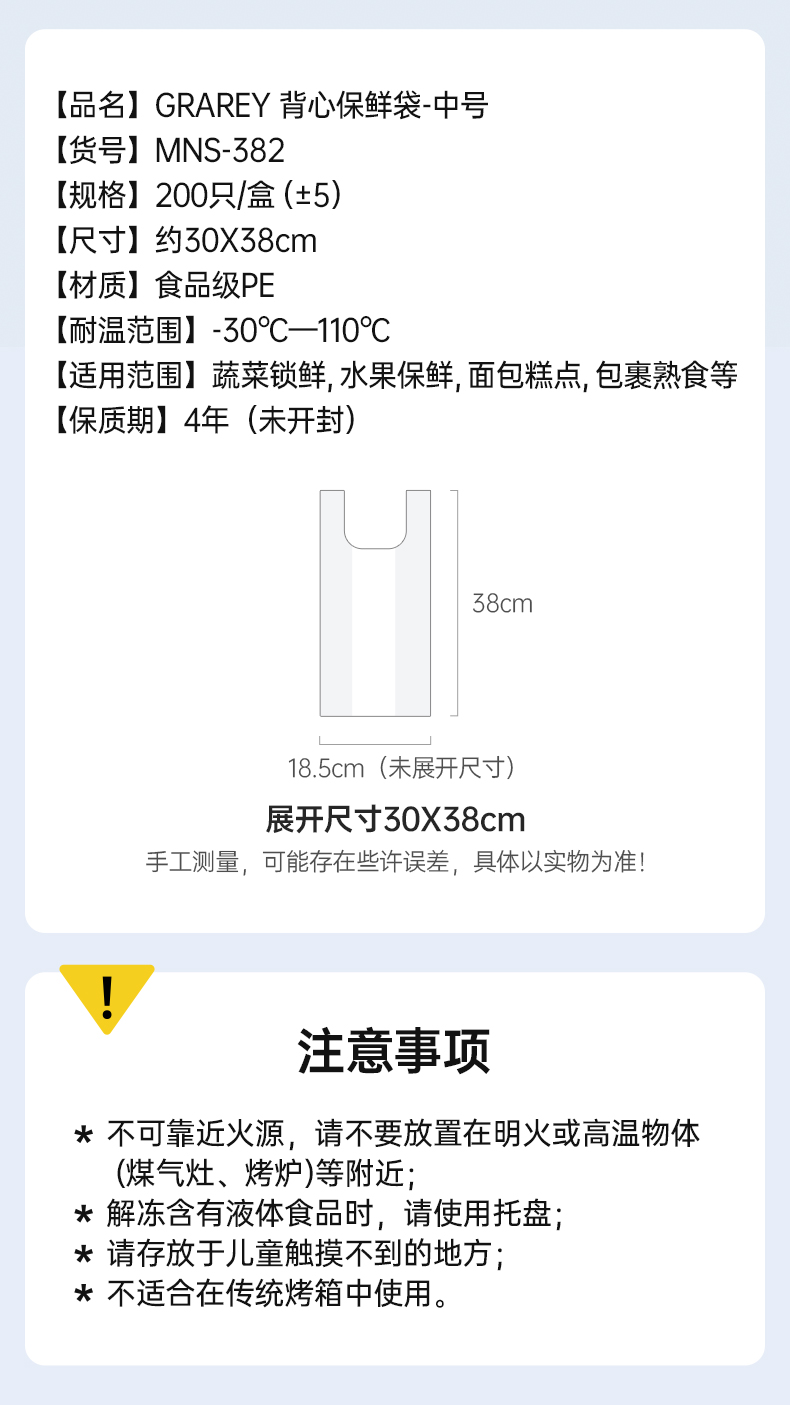 商品名称:GRAREY/格瑞亚背心保鲜袋-中号200只*2盒