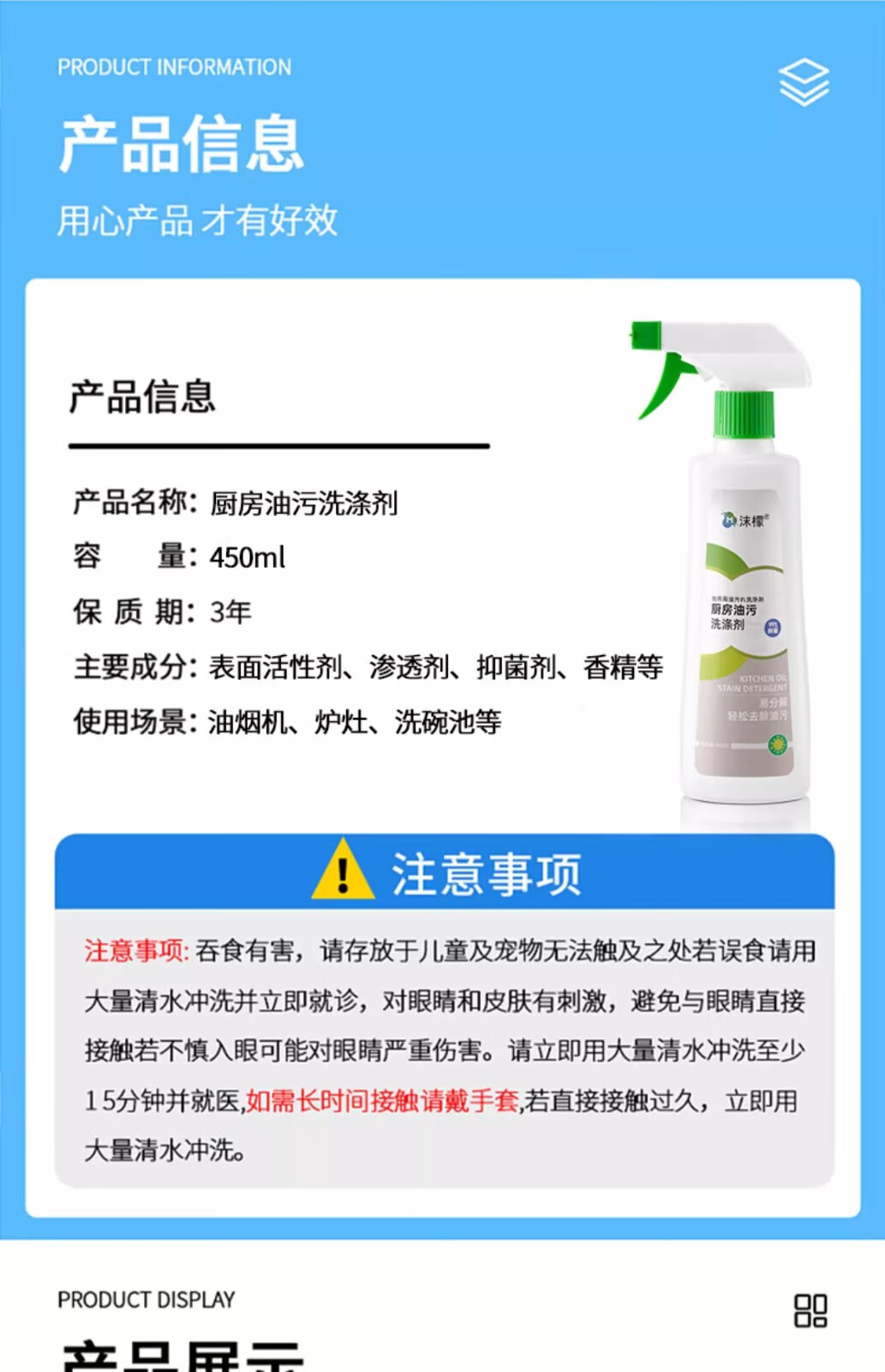 商品名称:沫檬厨房油污洗涤剂450ml