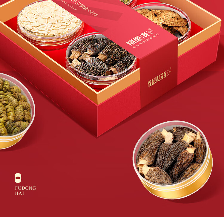 商品名称:福东海西洋参石斛羊肚菌陈皮四拼礼盒160g