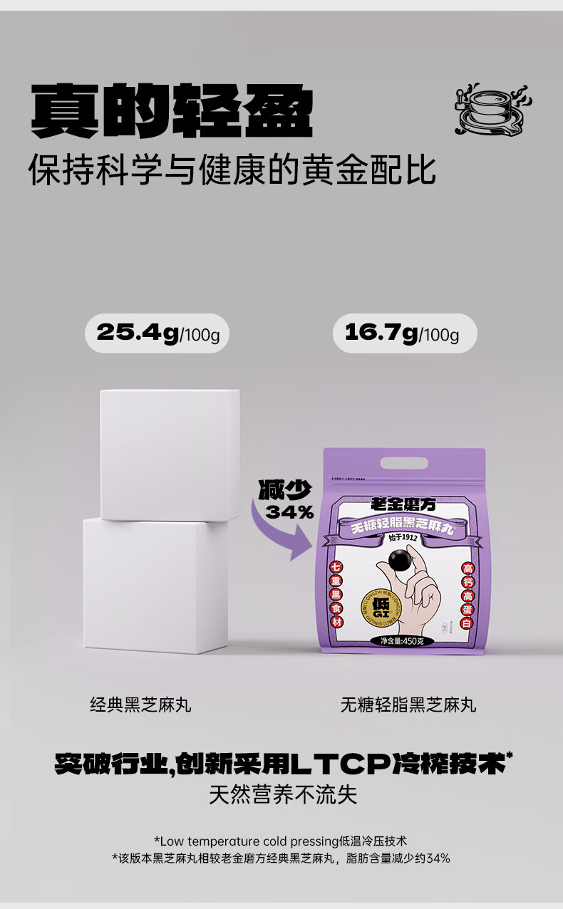 商品名称:老金磨方无糖轻脂芝麻丸450g