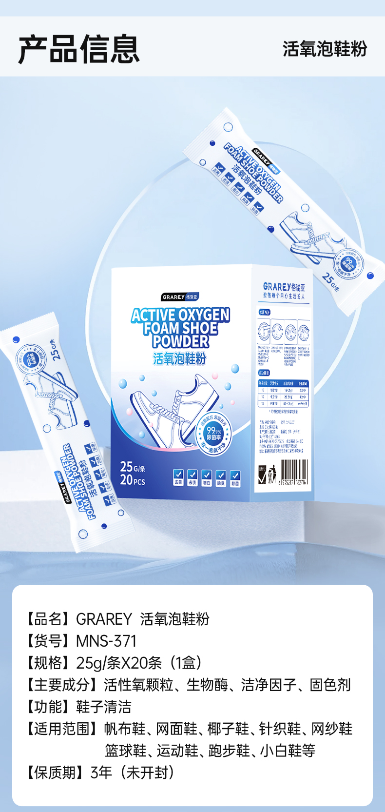 商品名称:GRAREY/格瑞亚活氧泡鞋粉25g*20条*2盒