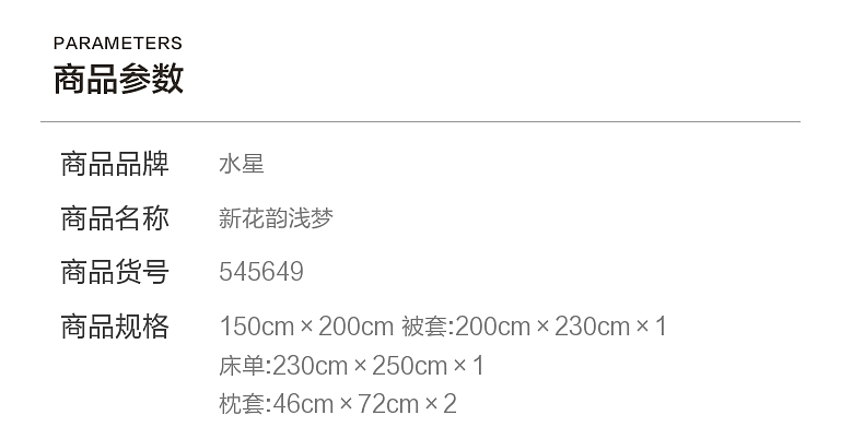 商品名称:【京东配送】水星家纺新花韵浅梦床品四件套200*230cm