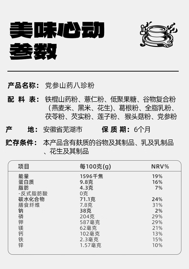商品名称:老金磨方党参山药八珍粉500g