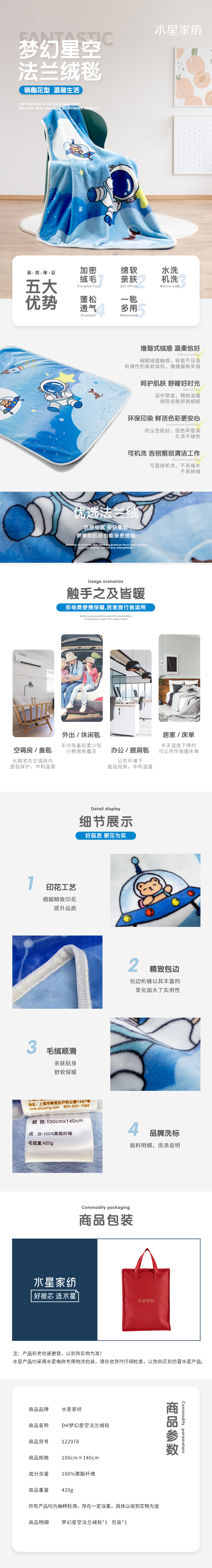商品名称:【京东配送】水星家纺梦幻星空法兰绒毯100*140cm 420g