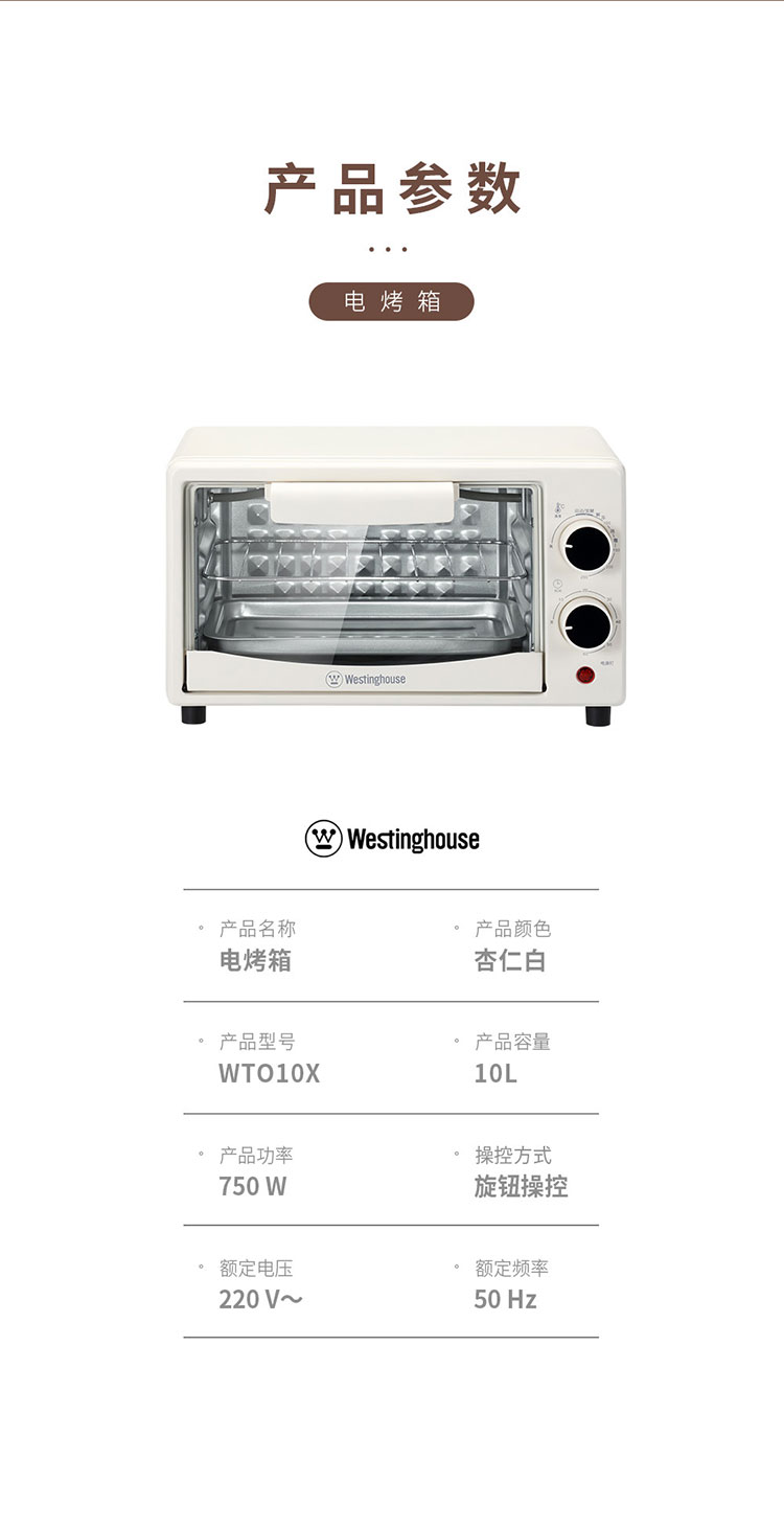 商品名称:Westinghouse/西屋10升电烤箱WTO10X