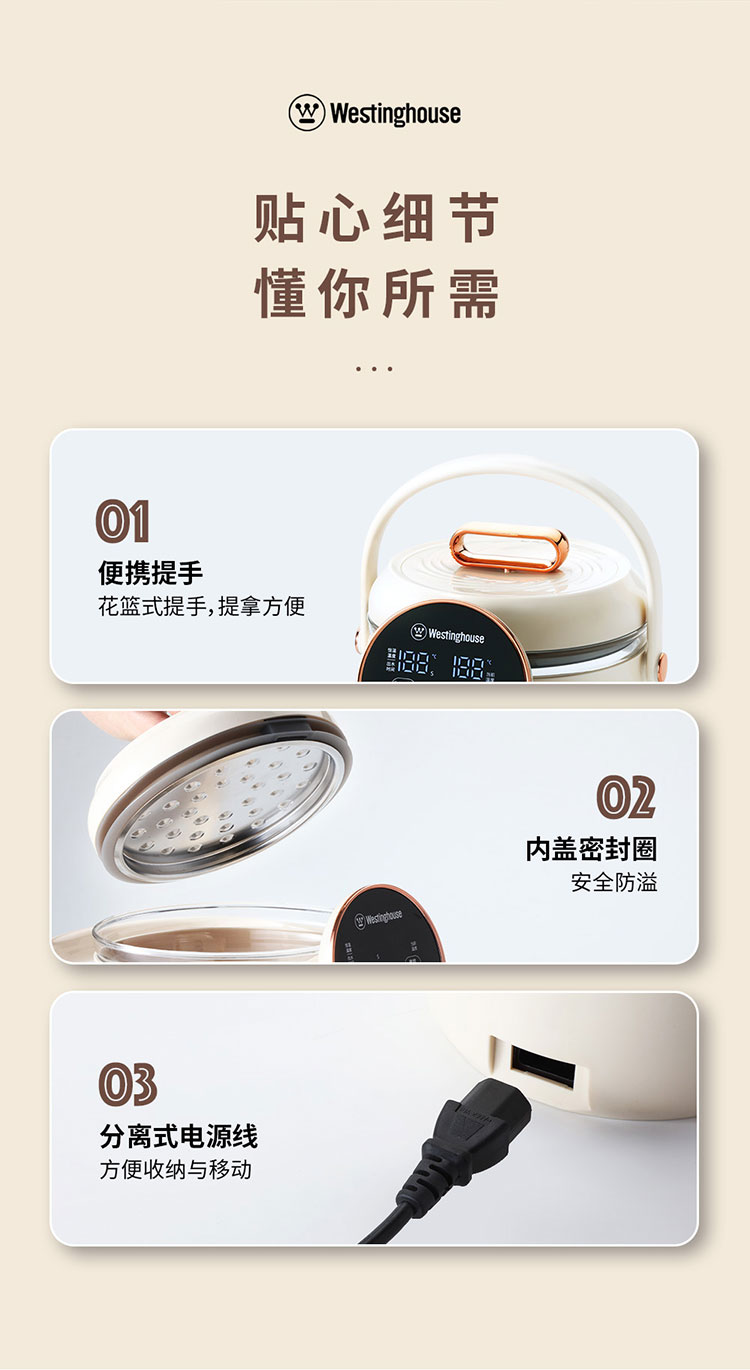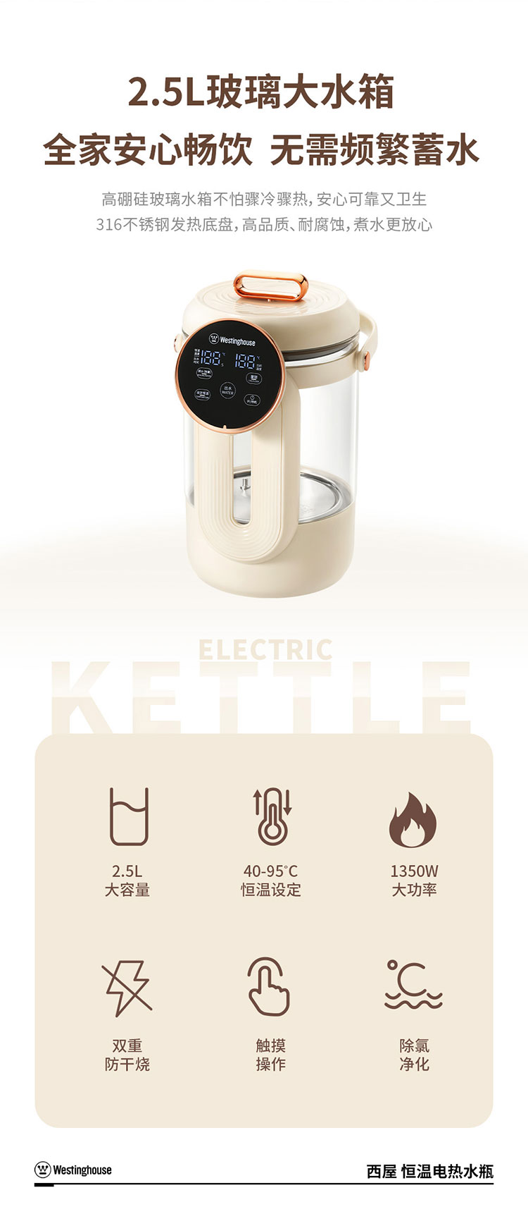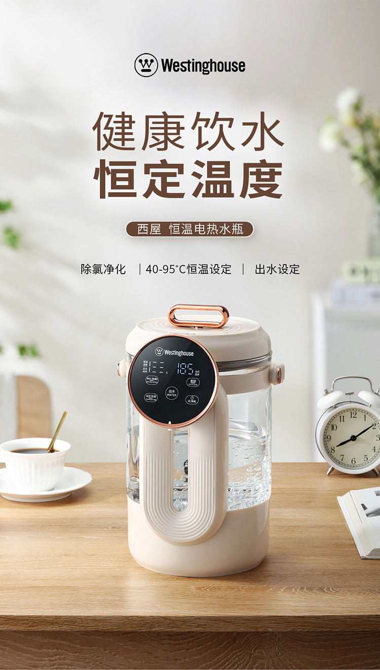 商品名称:Westinghouse/西屋2.5升恒温电热水瓶-杏仁白WSP025