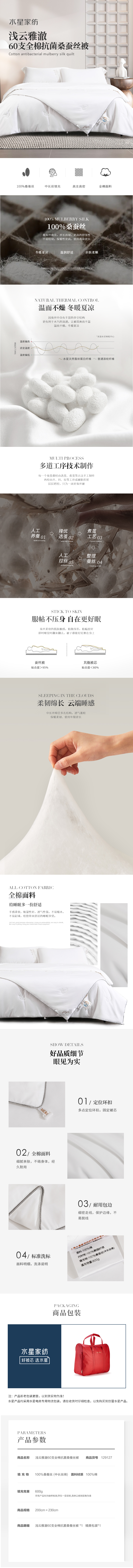 商品名称:【京东配送】水星家纺浅云雅澈60支全棉抗菌桑蚕丝被200*230cm 600g