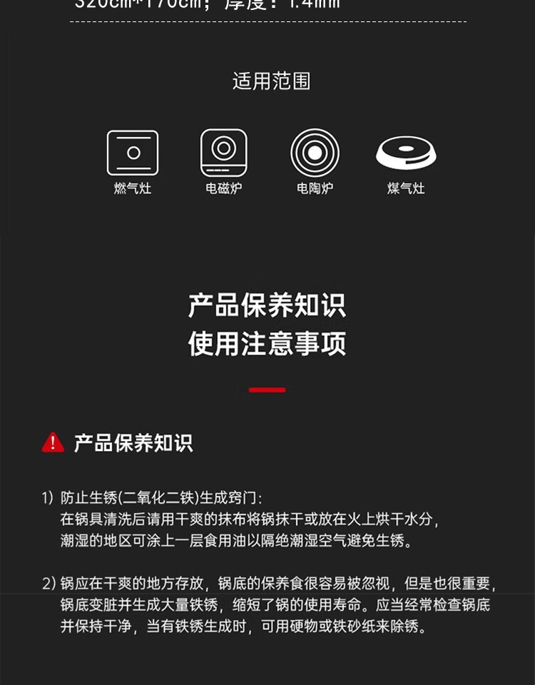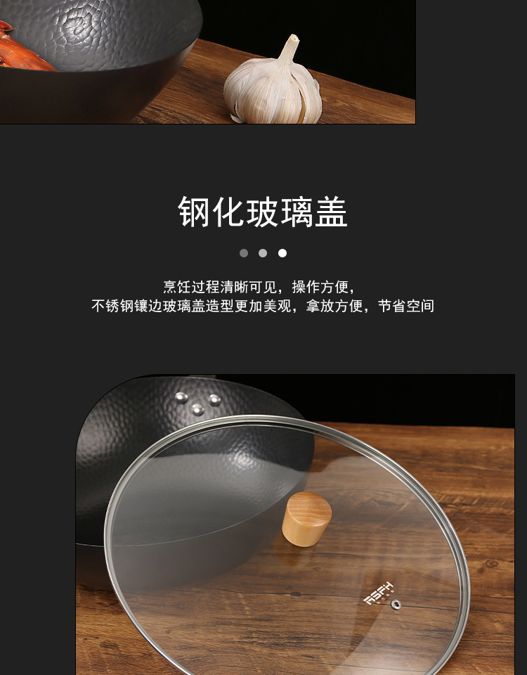 RSFH/乐仕菲斯32cm 黑钻精铁炒锅带玻璃盖RS-ZY3211